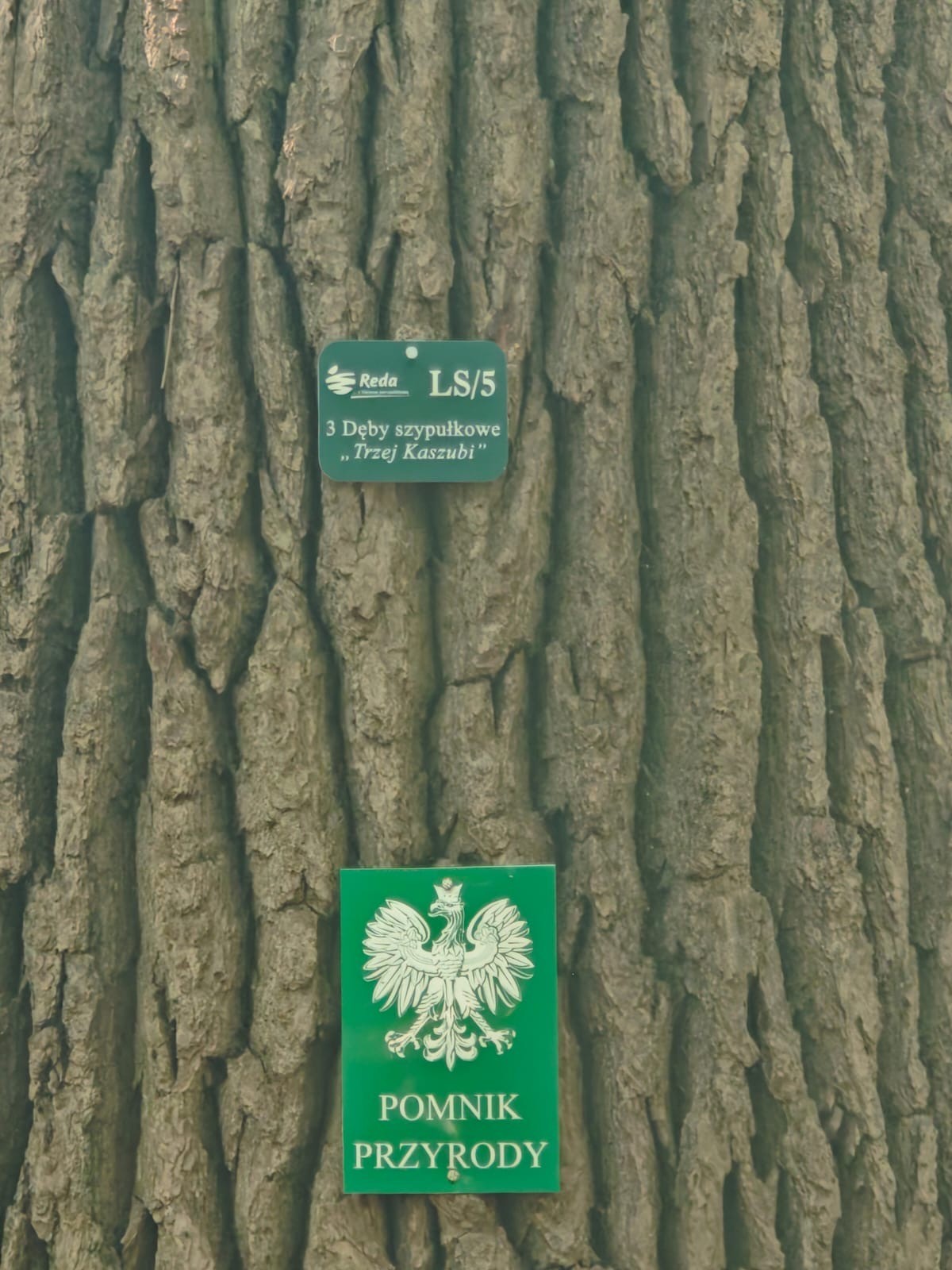 Dęby szypułkowe (Quercus robur L.): Dobromir, Strażnik, grupa trzech dębów: Trzej Kaszubi