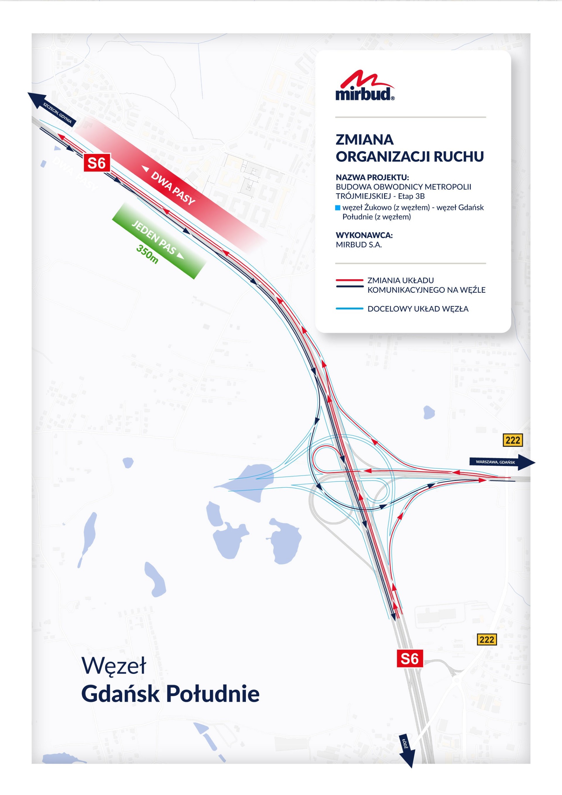 W ramach inwestycji odcinek S6 w rejonie węzła Gdańsk Południe zostanie poszerzony do trzech pasów ruchu w obu kierunkach (2x3). Prace prowadzone będą pod ruchem, dlatego kierowcy powinni przygotować się na utrudnienia.