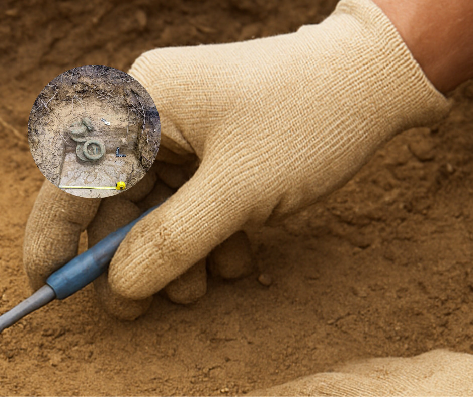 Na udostępnionych zdjęciach przez Pomorski Wojewódzki Konserwator Zabytków widać oględziny skarbu z udziałem inspektorów Wojewódzkiego Urzędu Ochrony Zabytków, archeologa z Muzeum Archeologicznego w Gdańsku oraz trzy spośród jedenastu wydobytych artefaktów.
