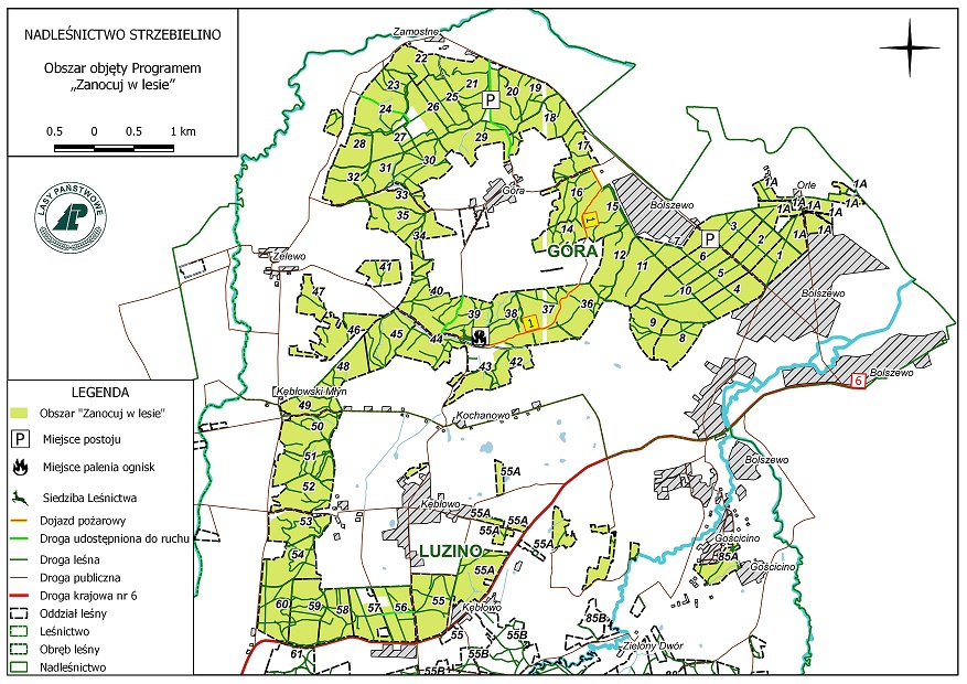 Kolejny obszar wyznaczyło Nadleśnictwo Strzebielino – znajduje się on na terenach leśnictw Góra i Luzino.