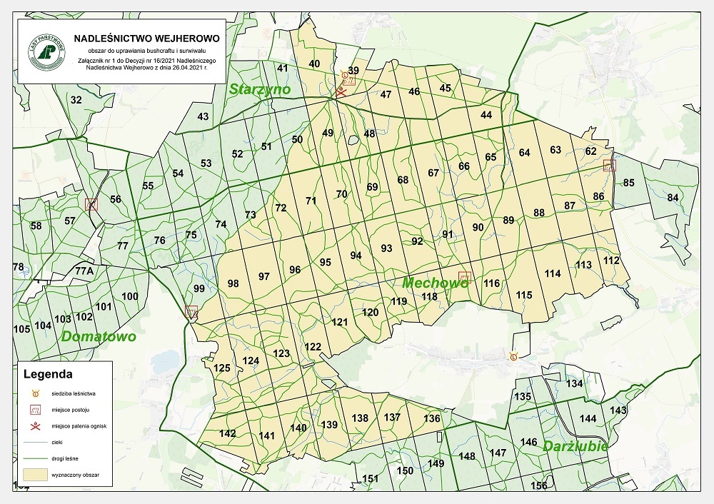 Z kolei Nadleśnictwo Gdańsk przeznaczyło do biwakowania lasy między Śmiechowem Południe w Wejherowie, Sopieszynem a Gniewowem.
