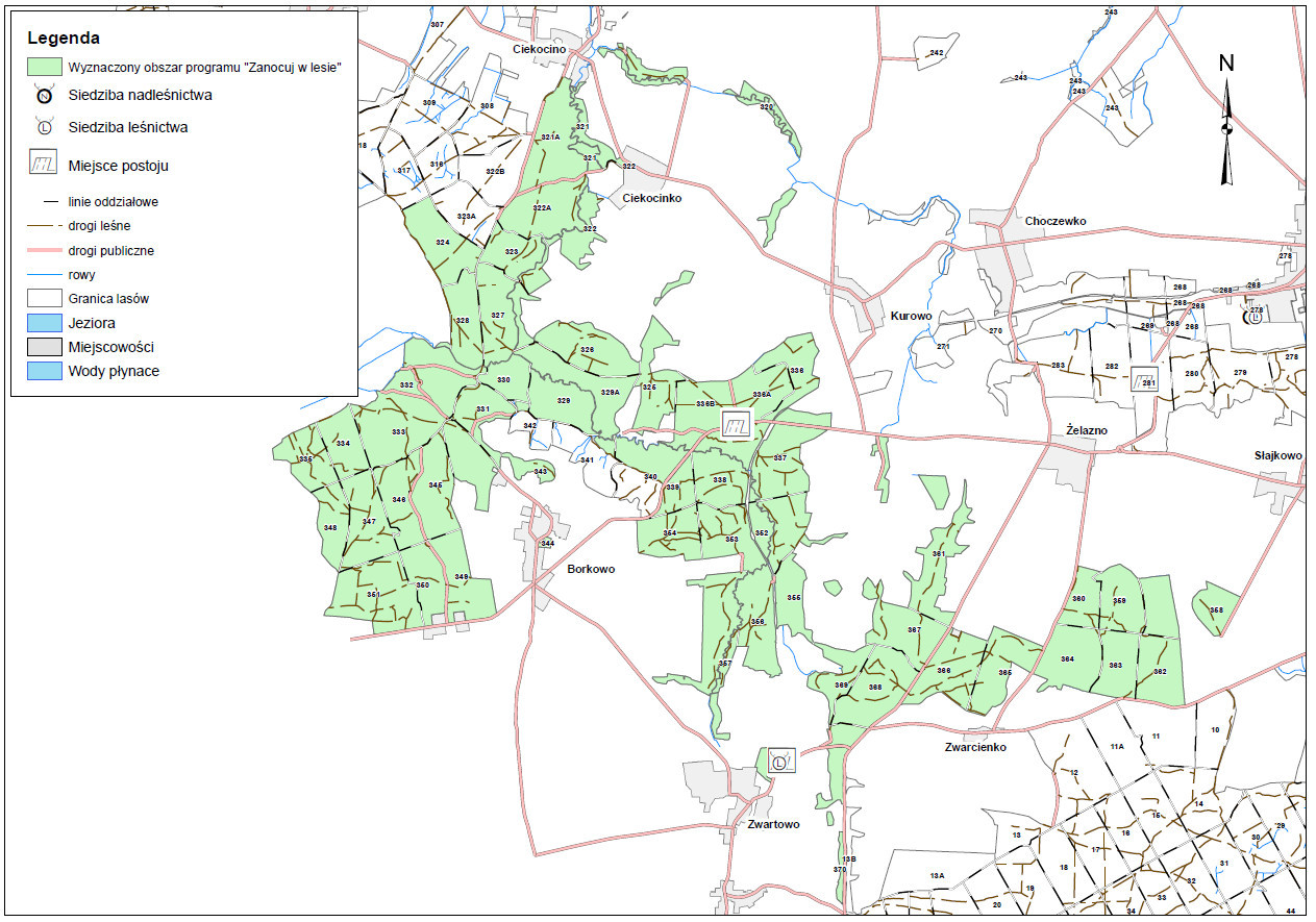 Legalnie zanocować w lesie można również w okolicach wsi Ciekocinko, Borkowo, Zwarcienko i Kurowo. Ten teren wyznaczyło Nadleśnictwo Choczewo.
