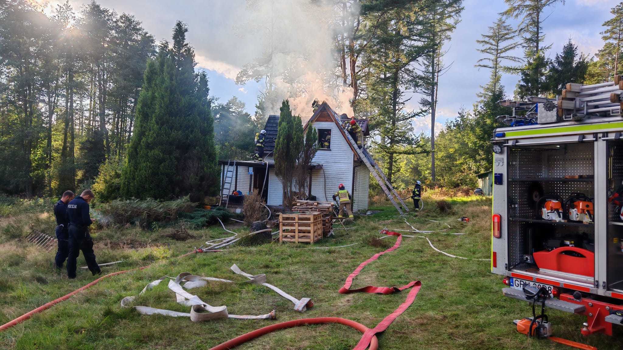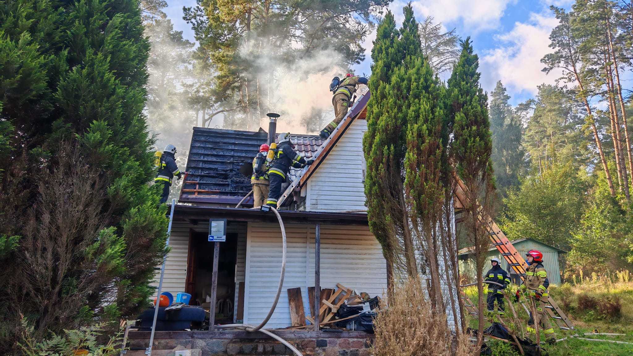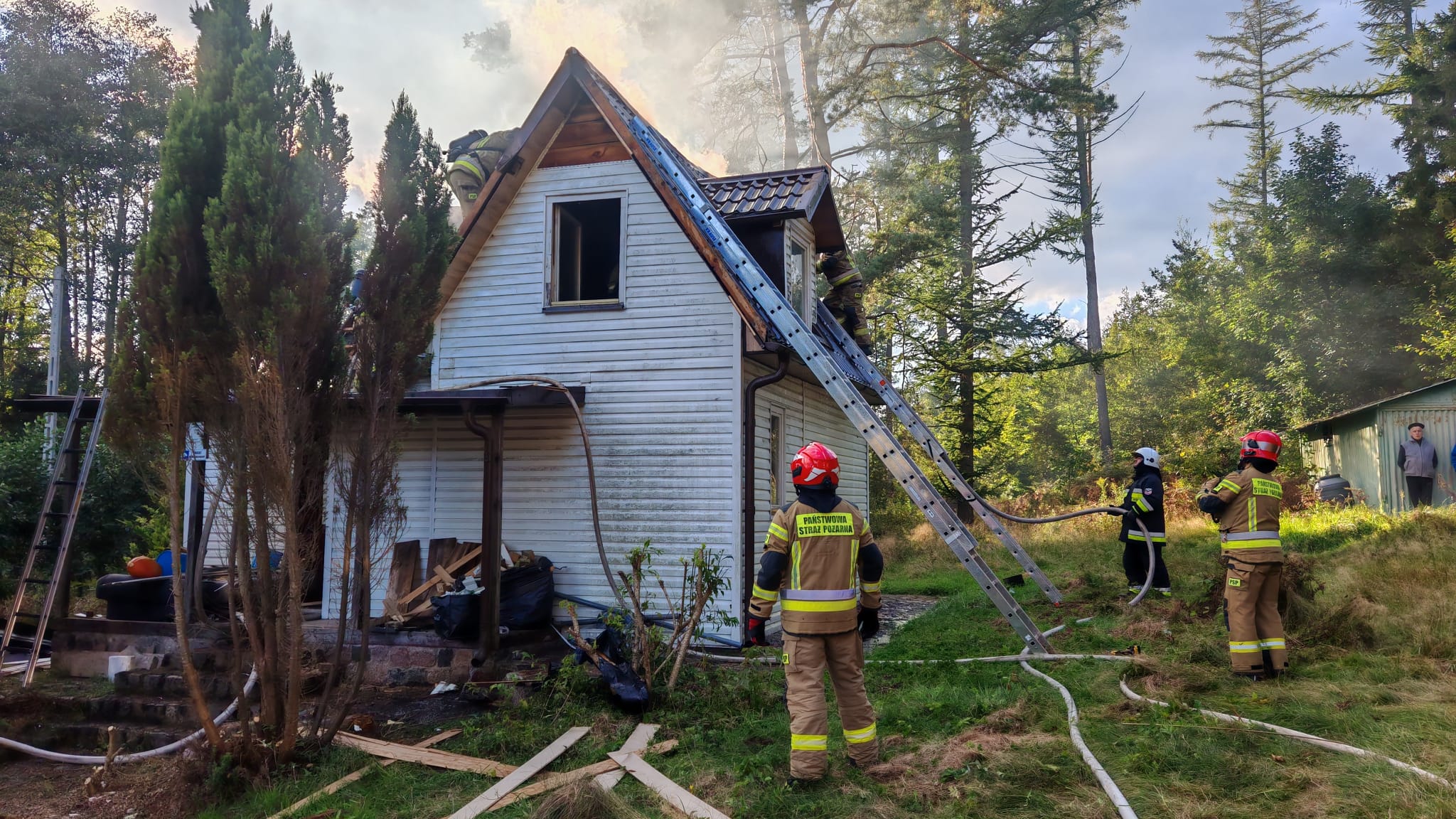 Do pożaru budynku letniskowego doszło w Domatówku w gminie Puck. Z ogniem walczyło nawet osiem zastępów straży pożarnej.