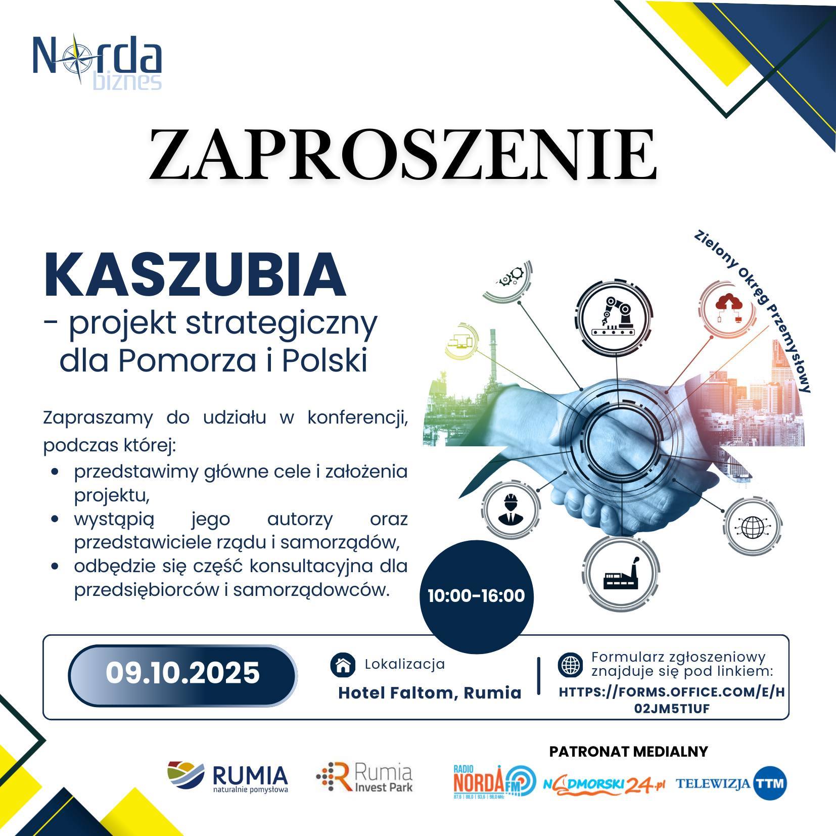 Już 9 października 2025 roku Rumia stanie się centrum dyskusji o przyszłości Pomorza. W Hotelu Faltom odbędzie się konferencja „Kaszubia – projekt strategiczny dla Pomorza i Polski”, podczas której uczestnicy poznają założenia jednego z najważniejszych projektów rozwojowych regionu.