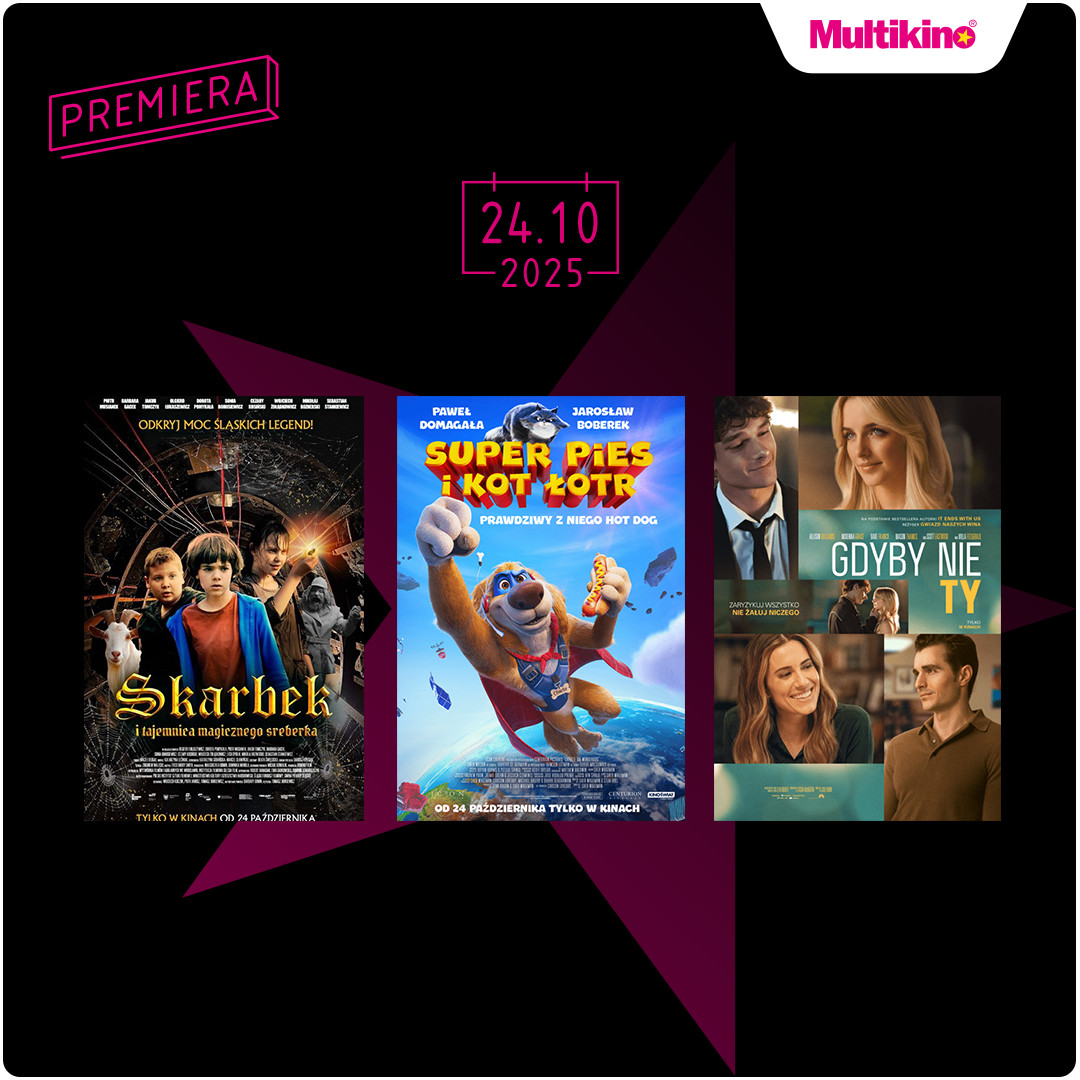 Od 24 października na widzów we wszystkich kinach sieci Multikino będą czekały trzy premierowe propozycje – „Gdyby nie ty” zrealizowany na podstawie bestsellerowej powieści autorstwa Colleen Hoover oraz polski film fabularny „Skarbek i tajemnica magicznego sreberka” i kanadyjska animacja „Super pies i kot łotr”. Szczegółowy repertuar jest dostępny na stronie www.multikino.pl.