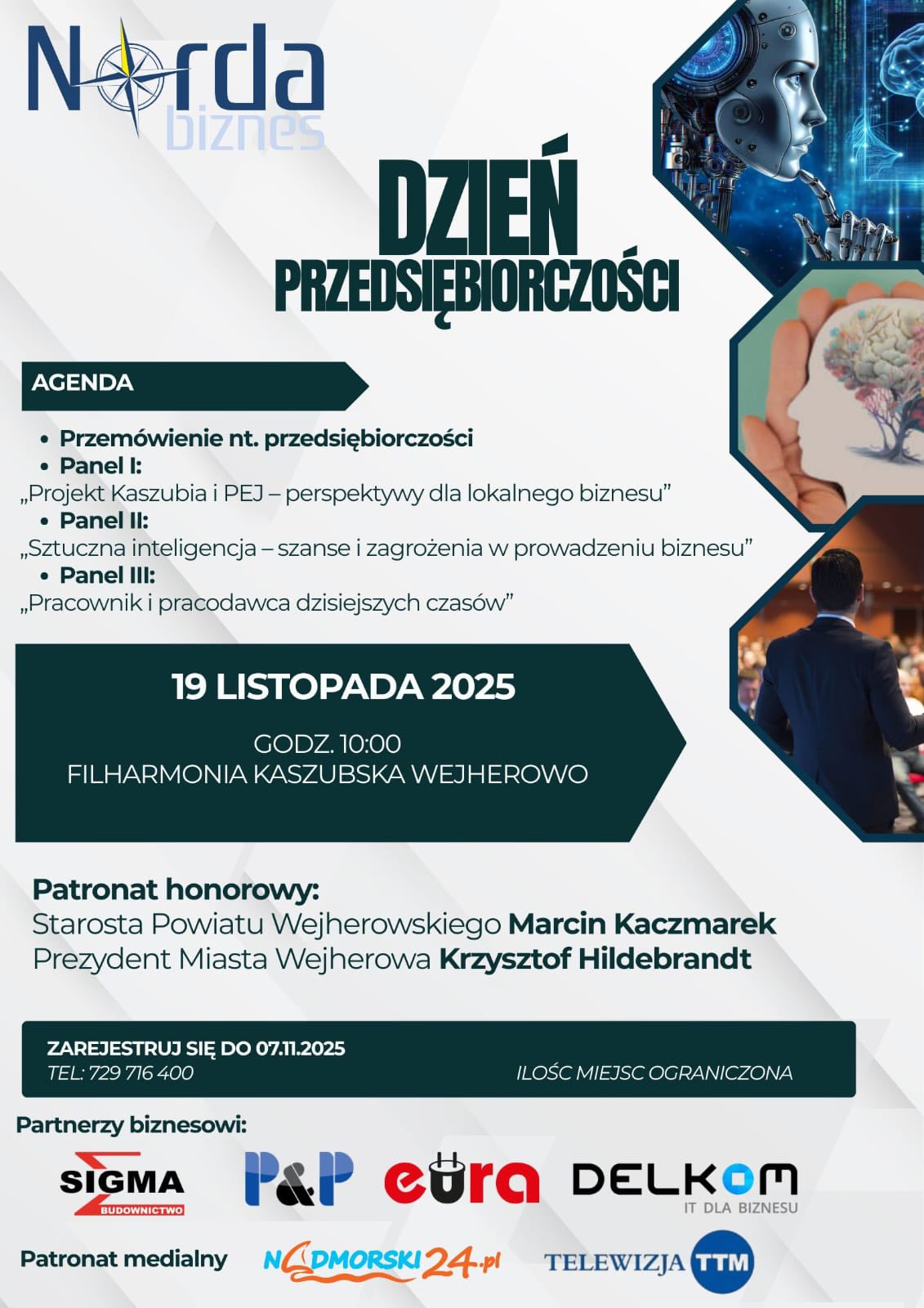 To wydarzenie poświęcone przyszłości lokalnego biznesu, innowacjom i wyzwaniom stojącym przed współczesnymi przedsiębiorcami. Już 19 listopada w Filharmonii Kaszubskiej w Wejherowie odbędzie się "Dzień Przedsiębiorczości".