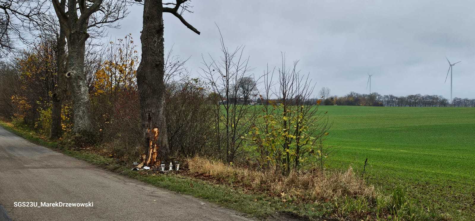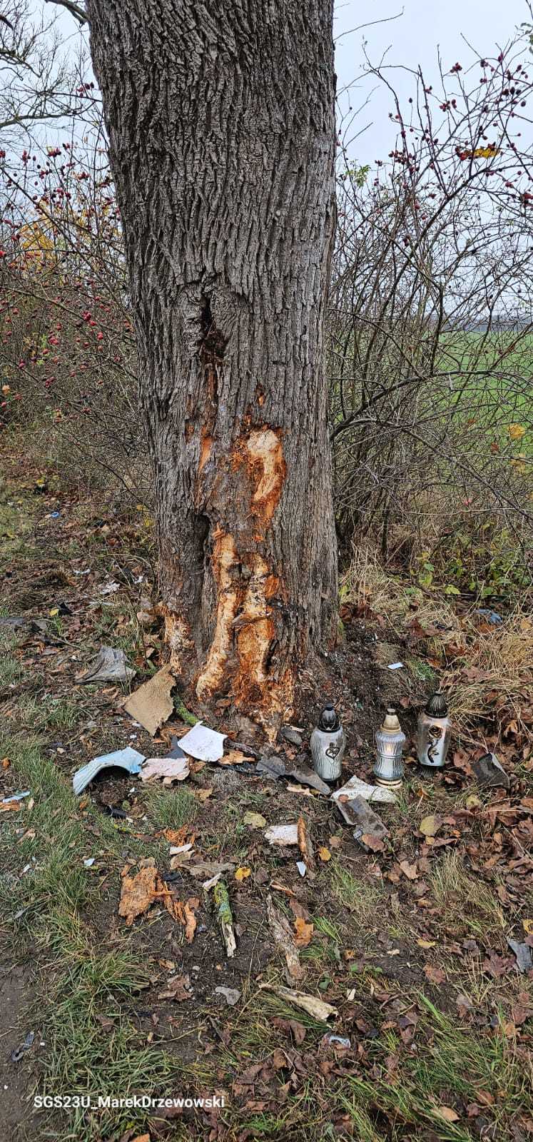 W miejscu tragedii, przy przydrożnym drzewie, w które uderzył samochód, mieszkańcy zostawiają symbole pamięci - to znak żałoby po dwóch młodych dziewczynach, które zginęły w tym miejscu.