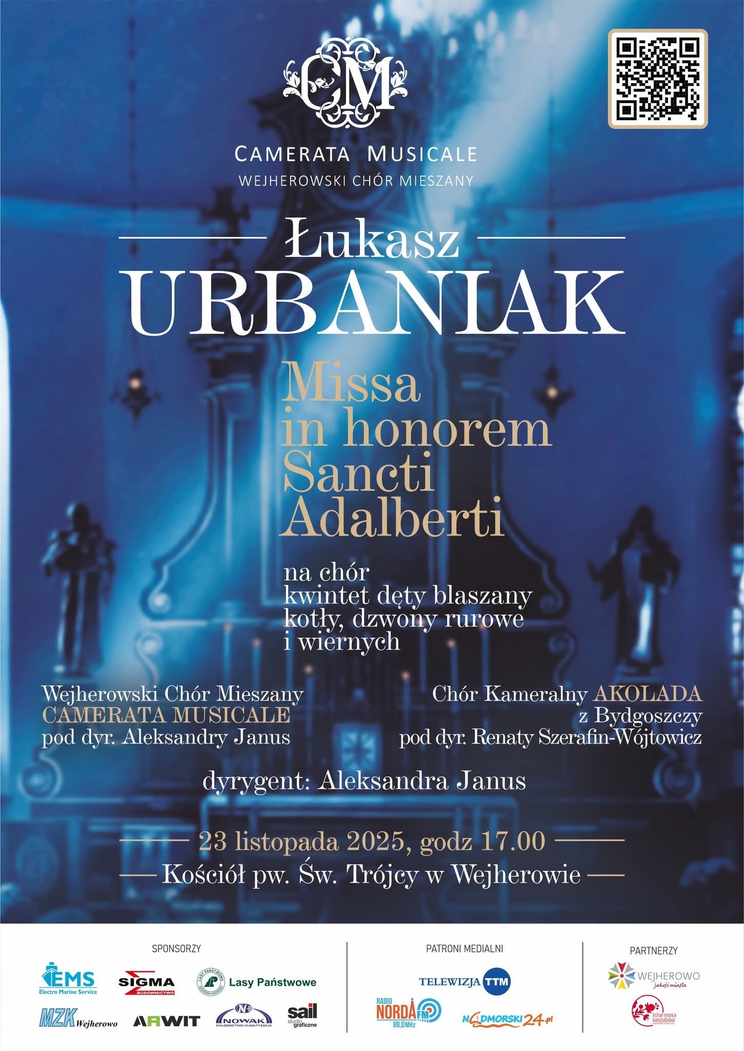 Dzieło „Missa in honorem Sancti Adalberti” autorstwa Łukasza Urbaniaka będzie można wysłuchać w kościele pw. Świętej Trójcy w Wejherowie. Przed publicznością wystąpią Wejherowski Chór Mieszany "Camerata Musicale" oraz Chór Kameralny Akolada z Bydgoszczy.