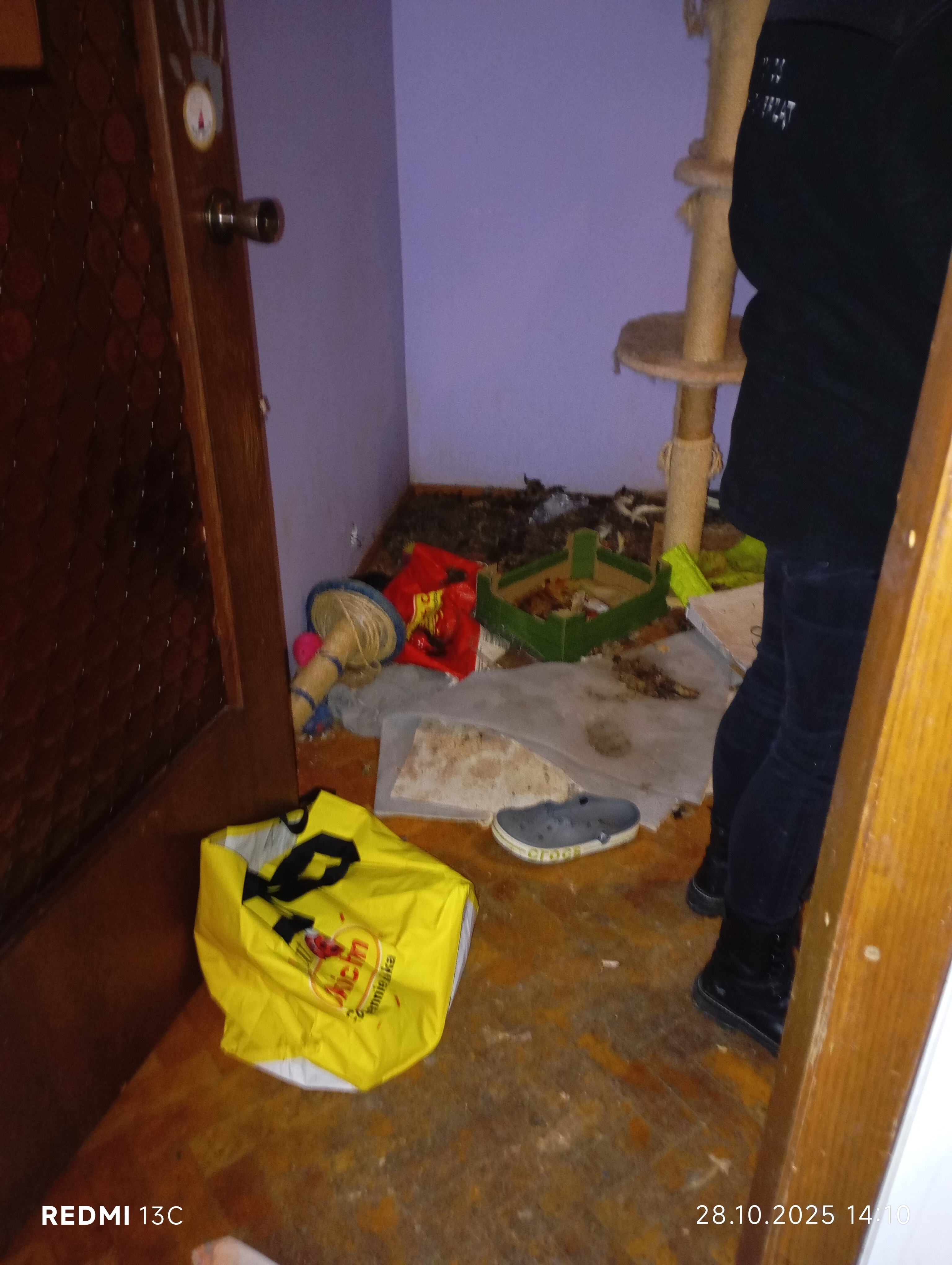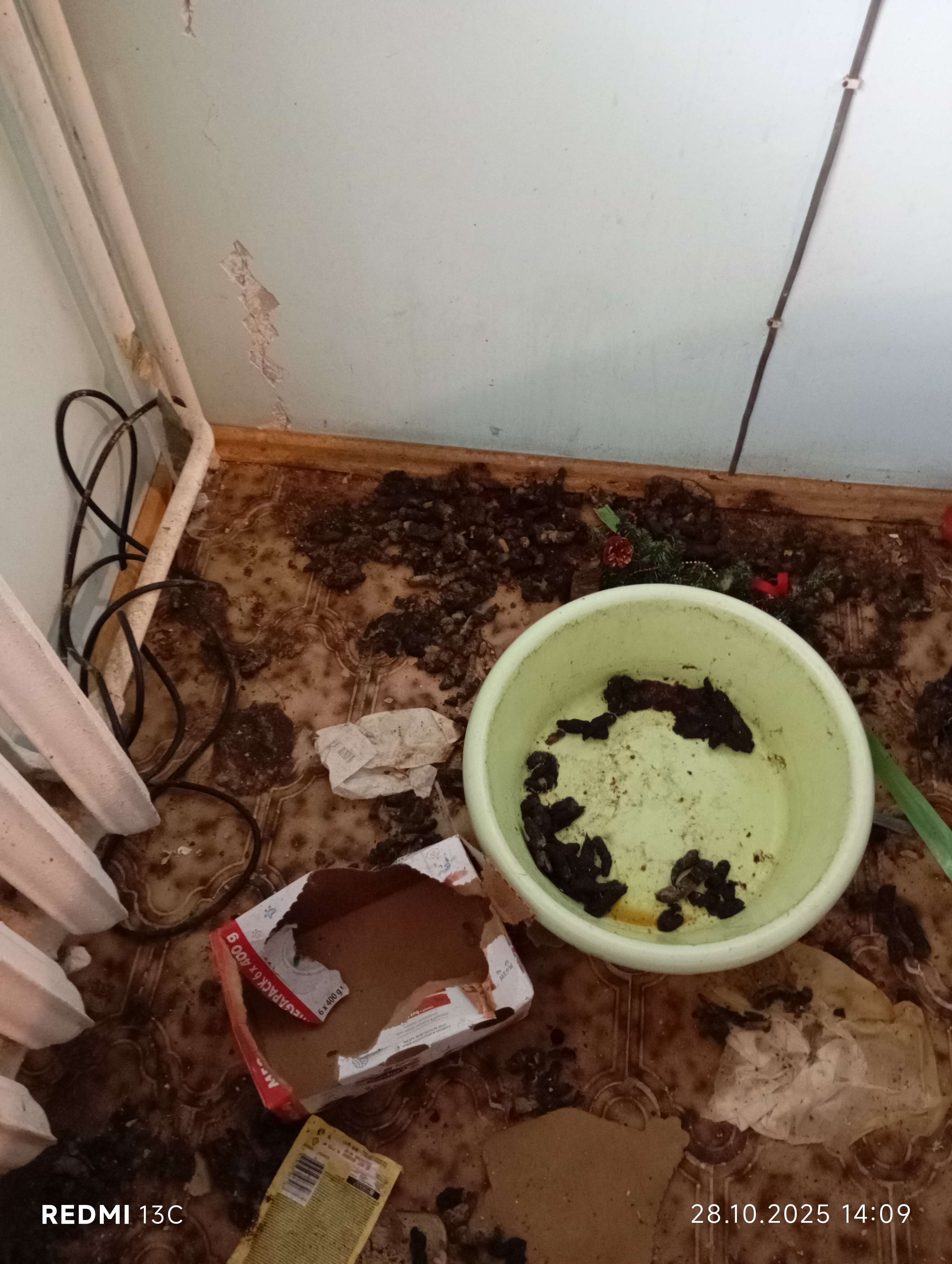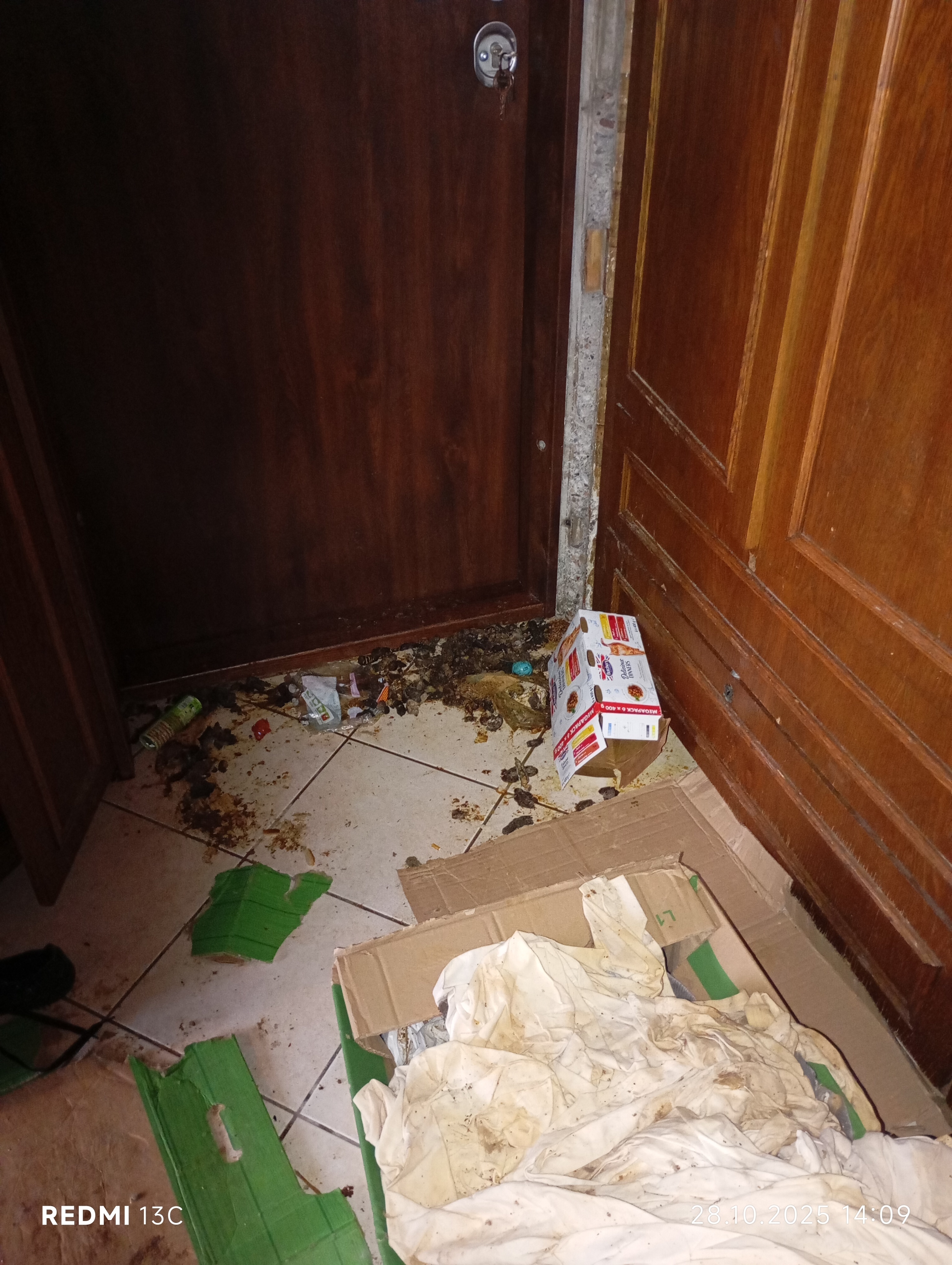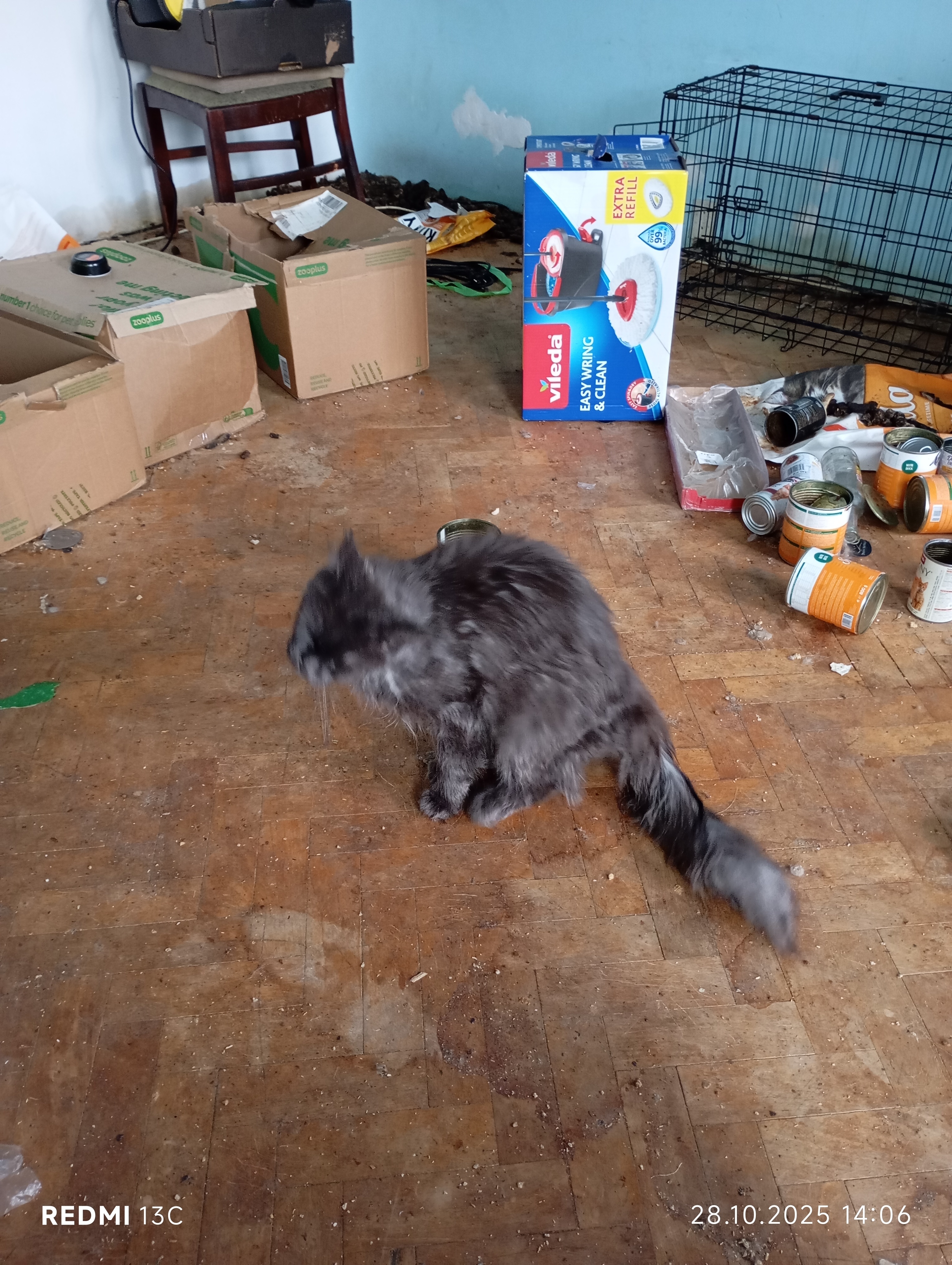 Inspektorzy OTOZ Animals przeprowadzili interwencję, podczas której zastali obraz dramatycznego zaniedbania. W mieszkaniu znajdowało się jedenaście kotów, przetrzymywanych w warunkach rażąco naruszających dobrostan zwierząt. Lokal był przepełniony śmieciami, zużytymi puszkami po karmie i warstwami odchodów. Brud był wszechobecny — również na meblach, które pokrywały kocie fekalia. W losowo porozstawianych miejscach stały przepełnione, od dawna nieczyszczone kuwety, a podłoga i nawet wanna służyły kotom za toaletę. W dniu interwencji zwierzęta nie miały dostępu do świeżej wody.