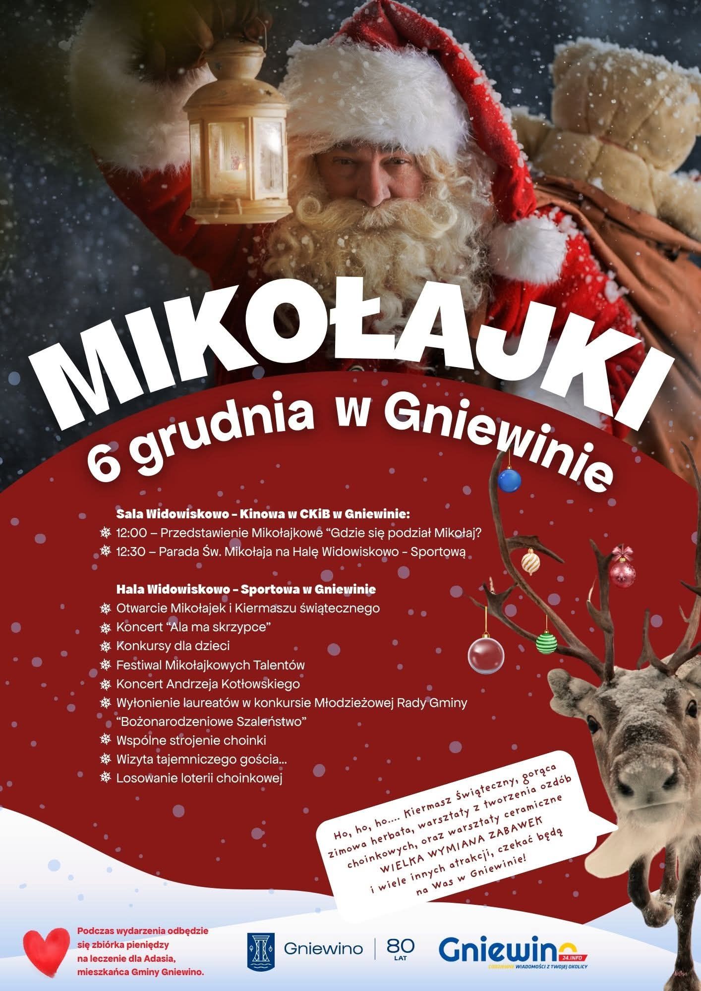 Mikołajki w Gniewinie odbędą się w dwóch lokalizacjach: w sali widowiskowo-kinowej CKiB oraz w hali widowiskowo-sportowej. Organizatorzy przygotowali bogaty program dla dzieci i dorosłych, a wydarzeniu towarzyszyć będzie także zbiórka charytatywna.