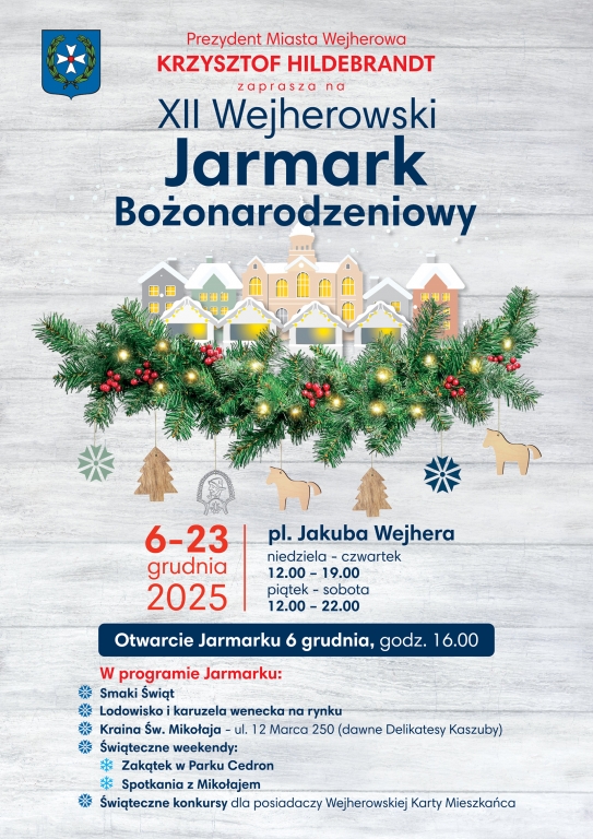 — W tym roku przygotowaliśmy bogaty program pełen atrakcji: stoiska pełne świątecznych specjałów, rodzinne Weekendy z Mikołajem, a także pełną cudów Krainę Świętego Mikołaja, Strefę Rękodzieła w Parku Cedron. Nie zabraknie również wyjątkowych konkursów dla posiadaczy Wejherowskiej Karty Mieszkańca - zachęca Krzysztof Hildebrandt, prezydent Wejherowa.