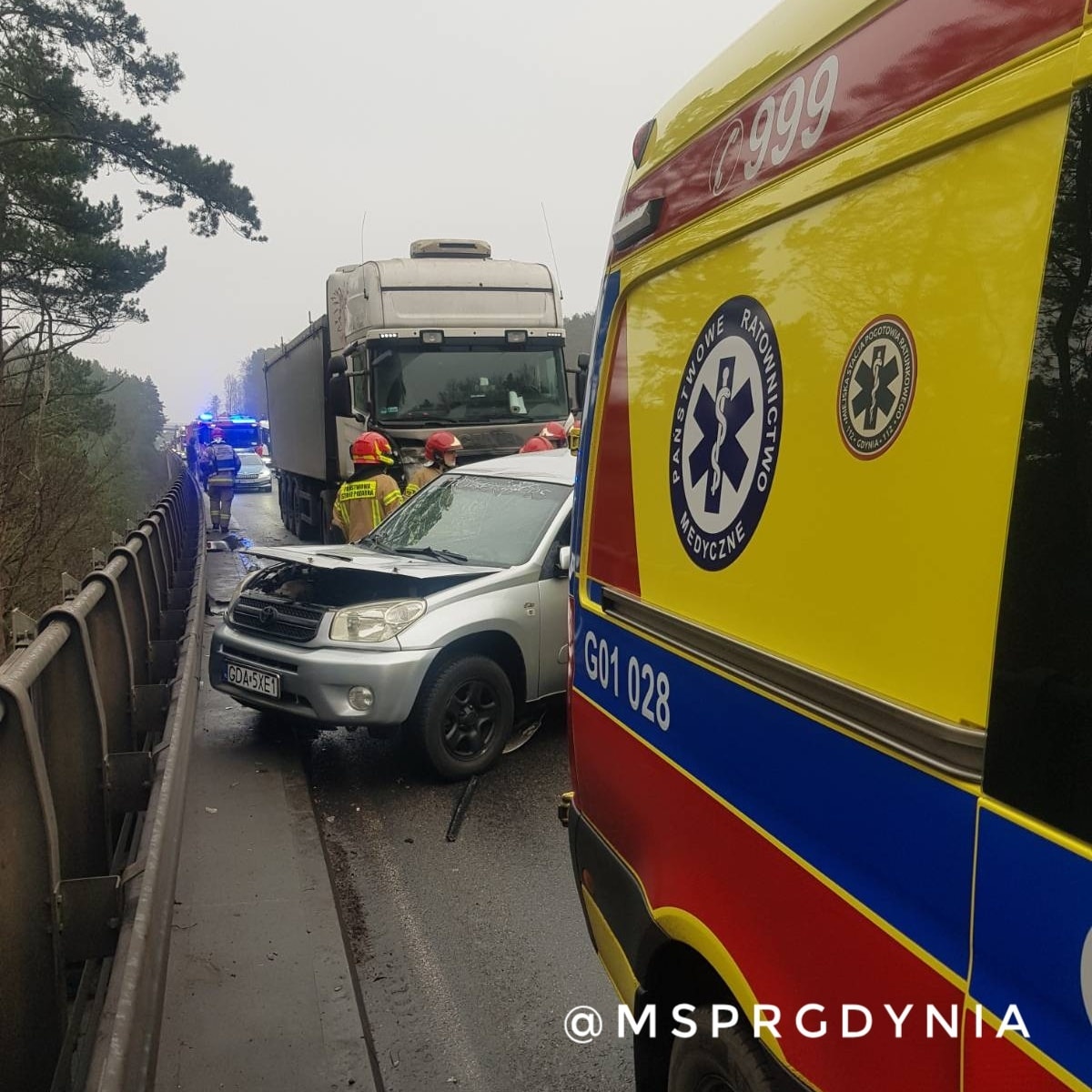 Gdyński Zespół Ratownictwa Medycznego został pilnie zadysponowany do zdarzenia drogowego na Estakadzie Kwiatkowskiego w Gdyni. Jak ustalono na miejscu, doszło tam do najechania samochodu ciężarowego typu TIR na pojazd osobowy.