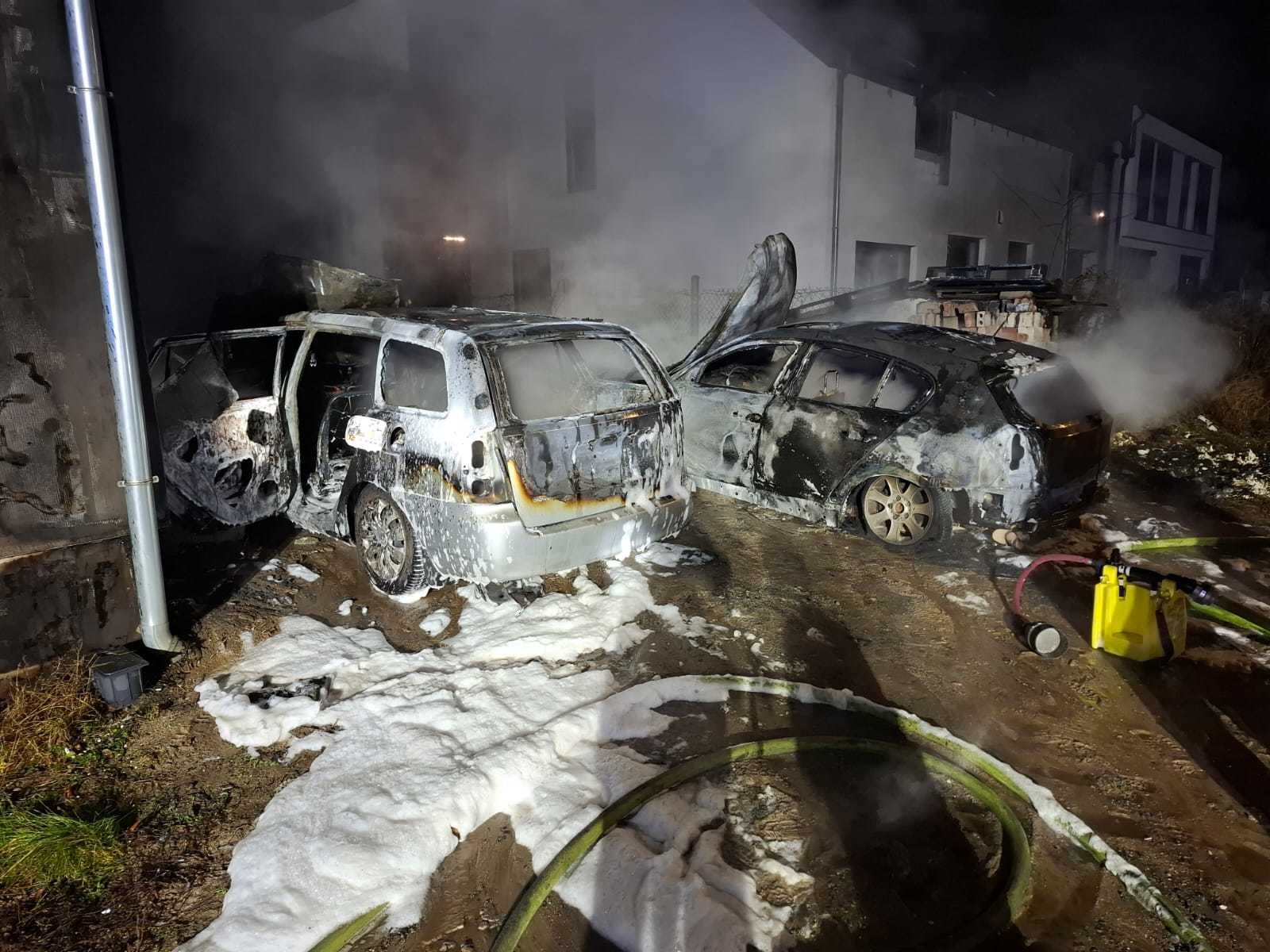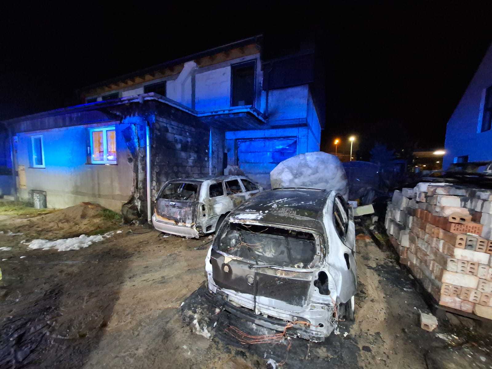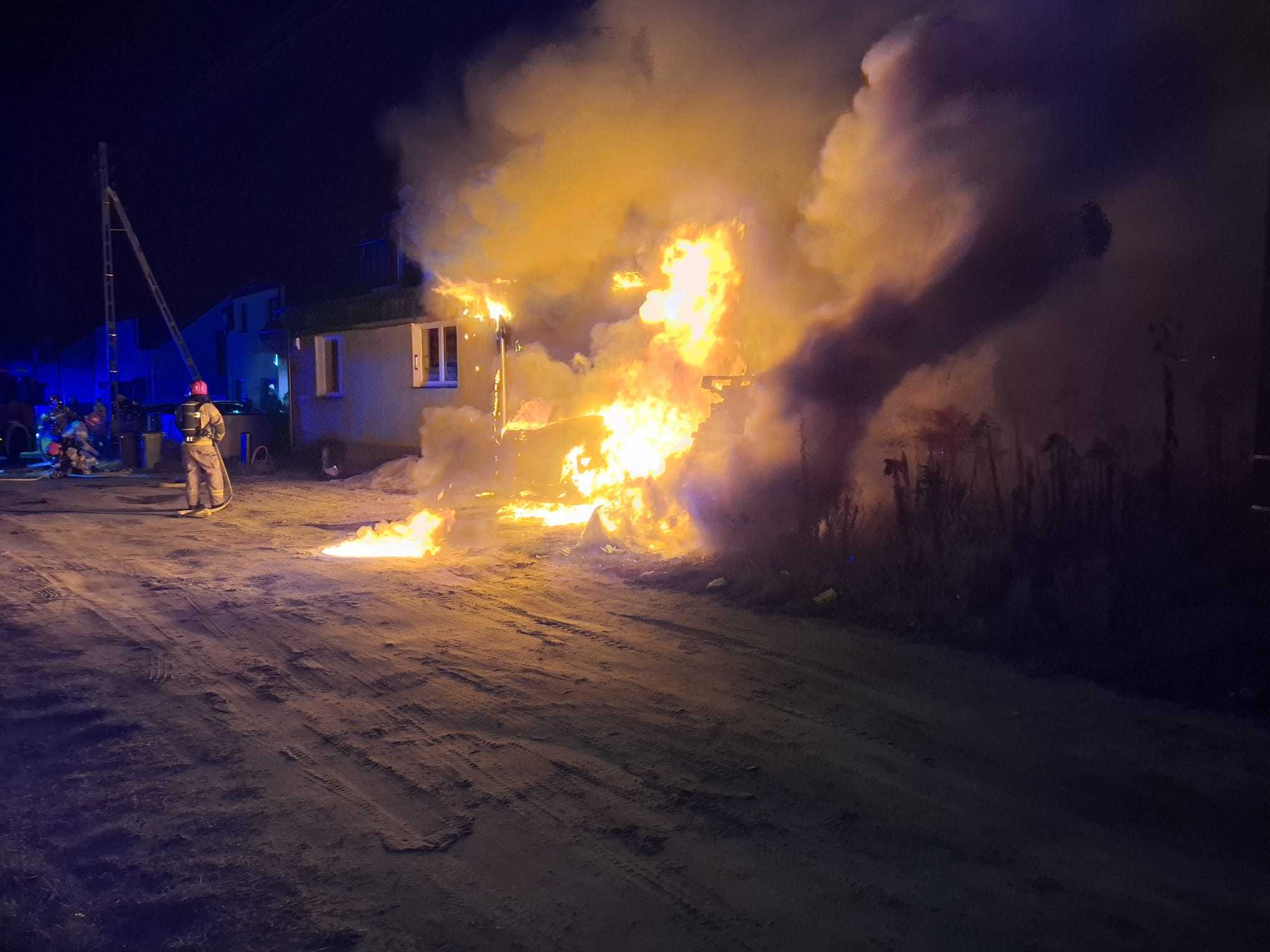 Płomienie pojawiły się tuż przy budynku jednorodzinnym. W nocy ogień objął dwa zaparkowane samochody osobowe i przeniósł się na elewację domu w rejonie garażu. Na miejsce natychmiast skierowano strażaków oraz policję. Na szczęście mieszkańcy zdążyli opuścić budynek przed przyjazdem służb, a w zdarzeniu nikt nie odniósł obrażeń.