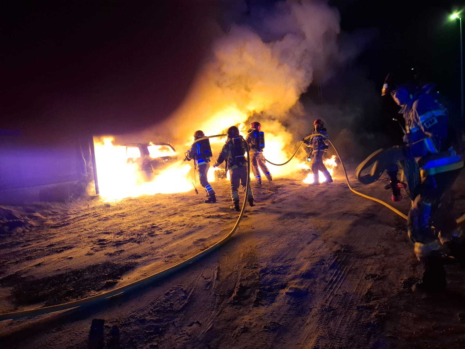 — Działania PSP polegały na zabezpieczeniu terenu oraz rozwinięciu linii gaśniczych. Podano prąd wody na elewację budynku oraz ???? prąd piany ciężkiej na palące się samochody. Jednocześnie sprawdzono budynek pod kątem obecności osób – nikogo nie stwierdzono. Po zlokalizowaniu pożaru miejsca o podwyższonej temperaturze kontrolowano kamerą termowizyjną i schładzano do bezpiecznego poziomu - podają strażacy.