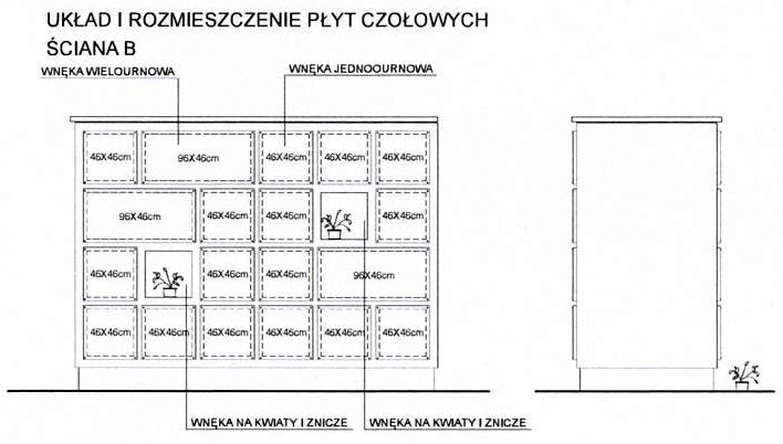 Zgodnie z wstępną koncepcją kolumbarium będzie składało się z czterech dwustronnych segmentów, z których każdy pomieści 46 wnęk. Łącznie zaplanowano 152 wnęki jednournowe oraz 32 wnęki wielournowe. Projekt uwzględnia również elementy poprawiające estetykę i funkcjonalność miejsca – specjalne półki na kwiaty i znicze, a także małą architekturę w postaci ławek i kwietników obsadzonych bylinami.