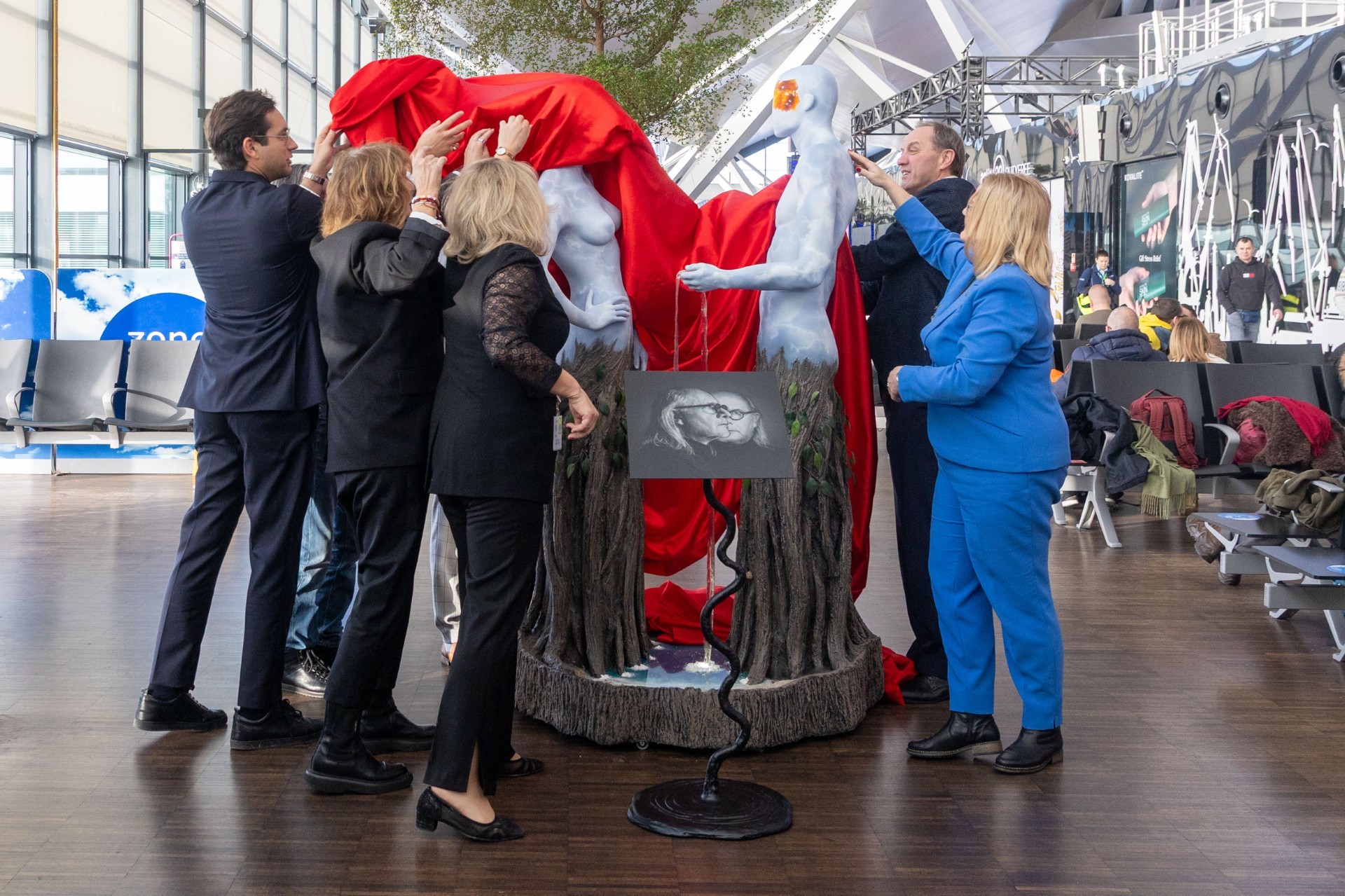 Nową lokalizację instalacji uroczyście odsłonili m.in. Mieczysław Struk, marszałek województwa pomorskiego, Agnieszka Baranowska, członkini Zarządu Województwa Pomorskiego, Marta Chełkowska, dyrektor Departamentu Turystyki i Sportu Urzędu Marszałkowskiego, a także Tomasz Kloskowski, prezes gdańskiego lotniska.
