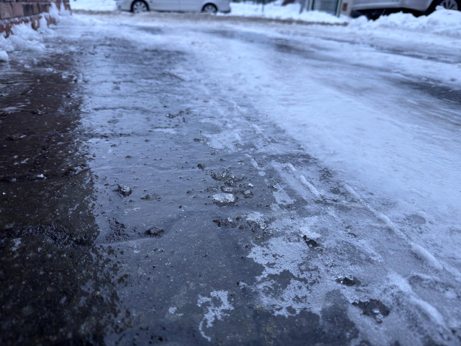"Uwaga! Dziś i jutro (14/15.01) możliwy marznący deszcz oraz gołoledź. Ogranicz podróże. Zostań w domu, jeśli możesz. Uważaj na drogach i chodnikach."