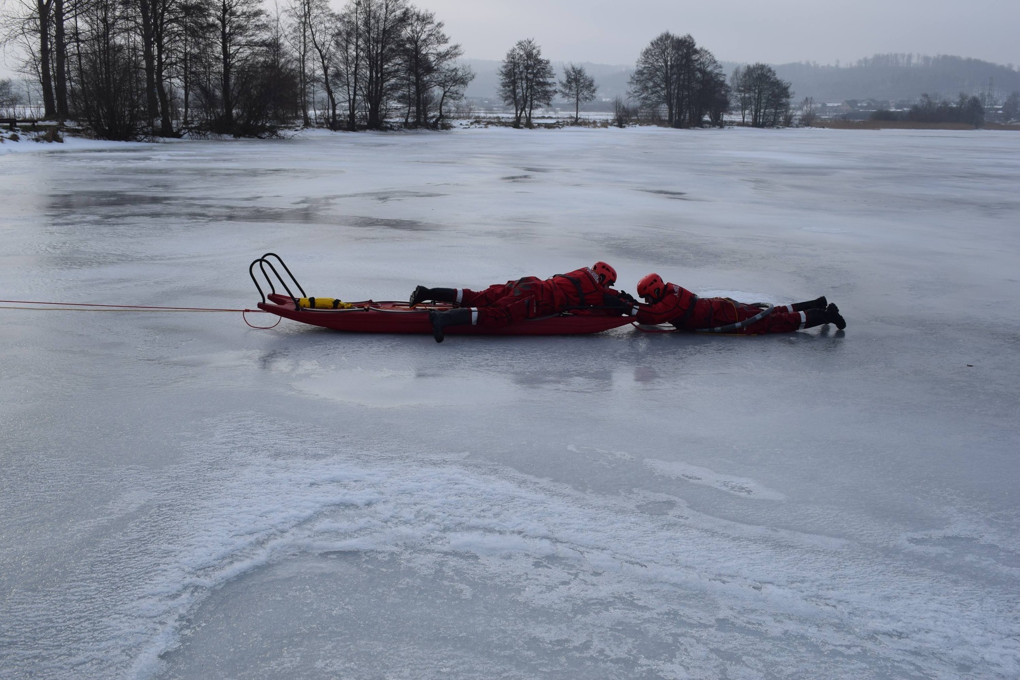 Zamarznięte jezioro, niskie temperatury i realistyczne scenariusze zagrożeń. W sobotę, 17 stycznia, na jeziorze w Orlu (gmina Wejherowo) odbyły się specjalistyczne ćwiczenia z zakresu ratownictwa lodowego.