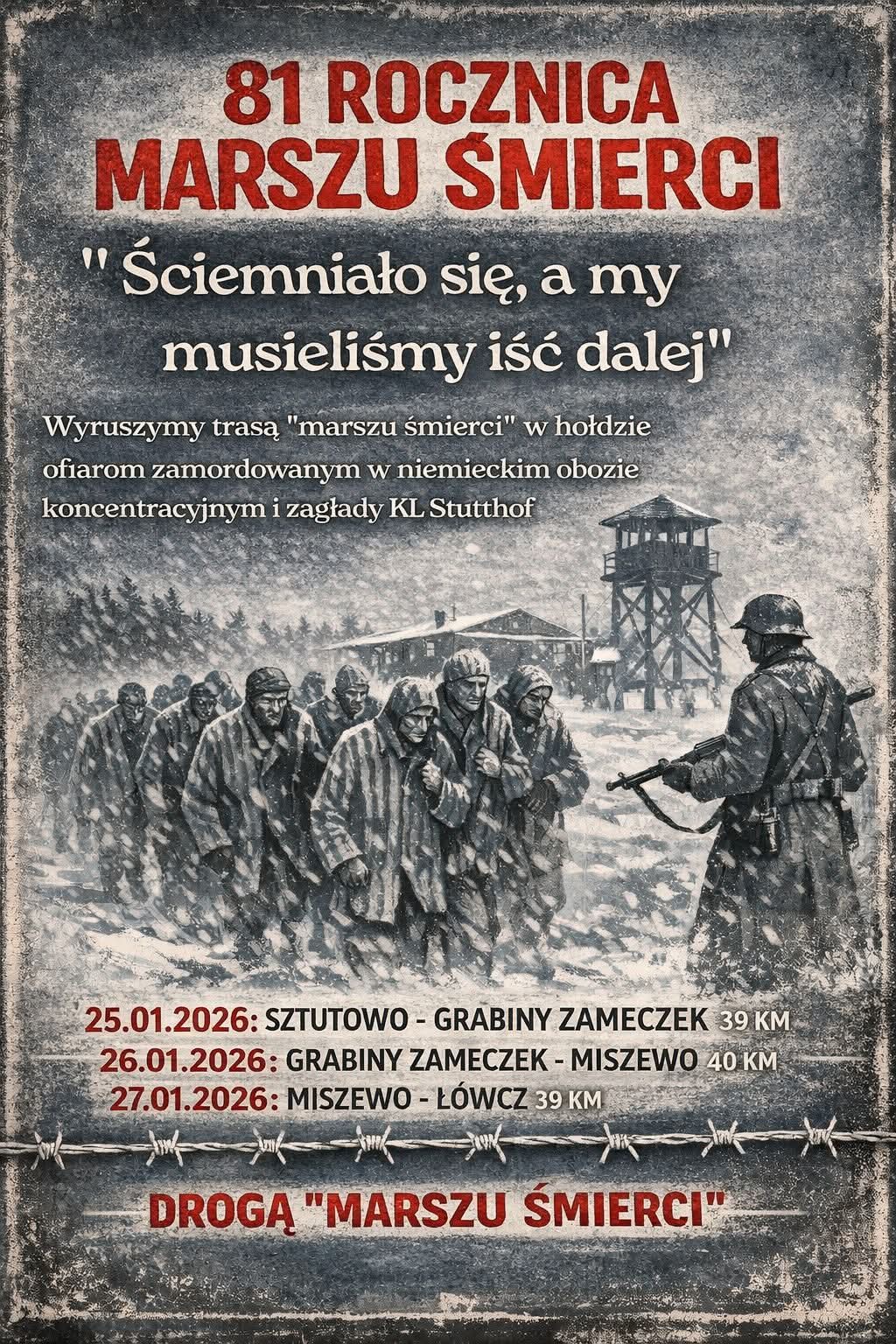 W najbliższą niedzielę, 25 stycznia, w 81. rocznicę tragicznego Marszu Śmierci więźniów niemieckiego obozu koncentracyjnego i zagłady KL Stutthof, po raz drugi wyruszy Marsz Pamięci historyczną trasą ewakuacji obozowej.
