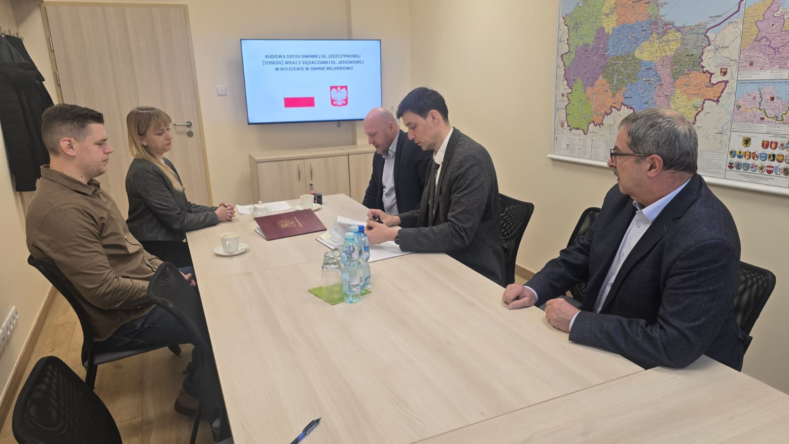 Wójt gminy Wejherowo Przemysław Kiedrowski podpisał umowę z firmą Pol-Dróg S.A. na realizację budowy wspomnianych ulic. W podpisaniu umowy uczestniczyli również zastępca wójta Anna Podbielska, skarbnik Krystyna Kohnke oraz sołtys Bolszewa Edmund Bianga.