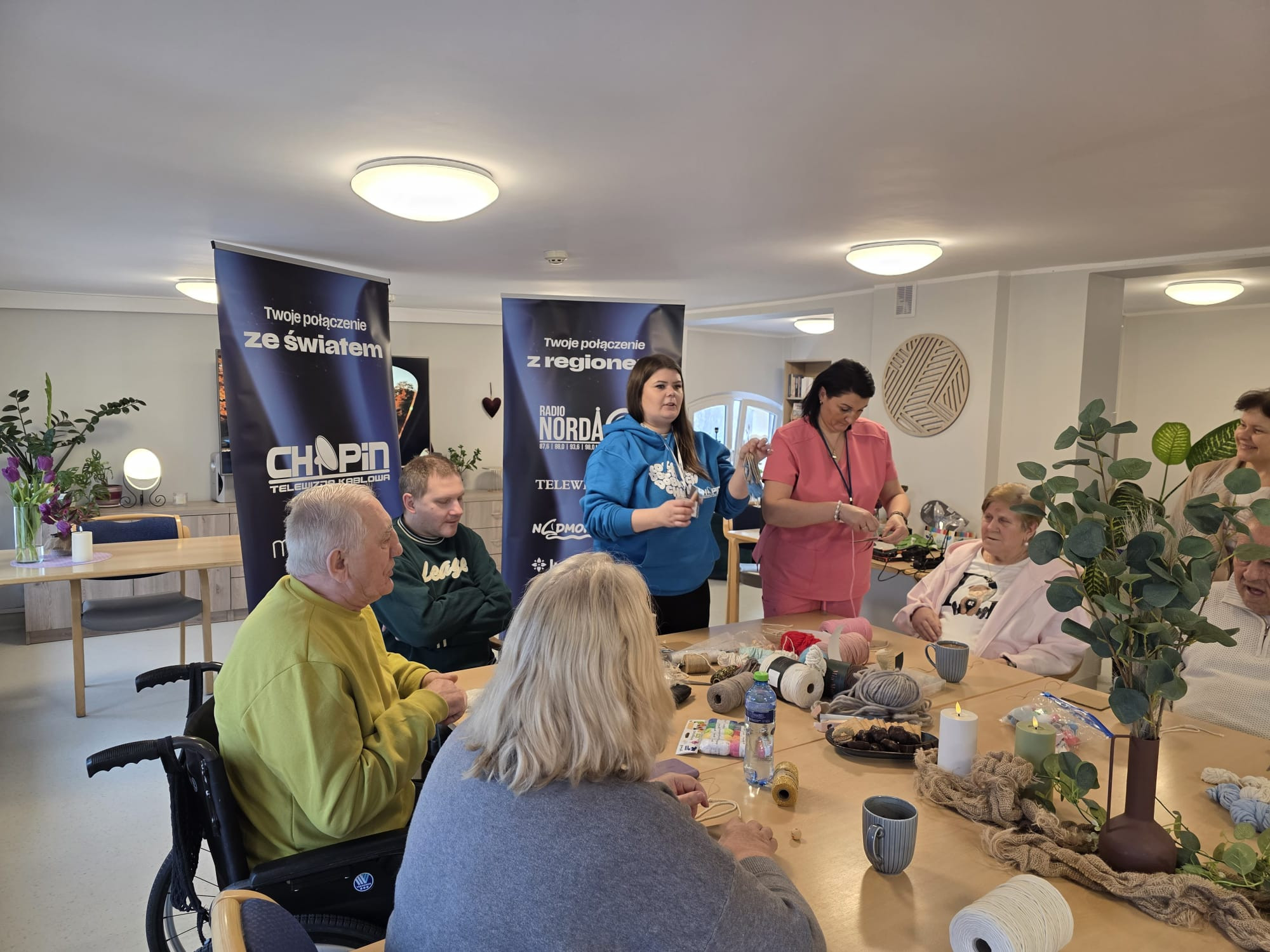 Zaopatrzeni w sznurki, nici i włóczki pracownicy Chopin Telewizji Kablowej wspólnie z mieszkańcami Domu Pomocy Społecznej spotkali się, żeby poprzez rękodzieło budować relacje.