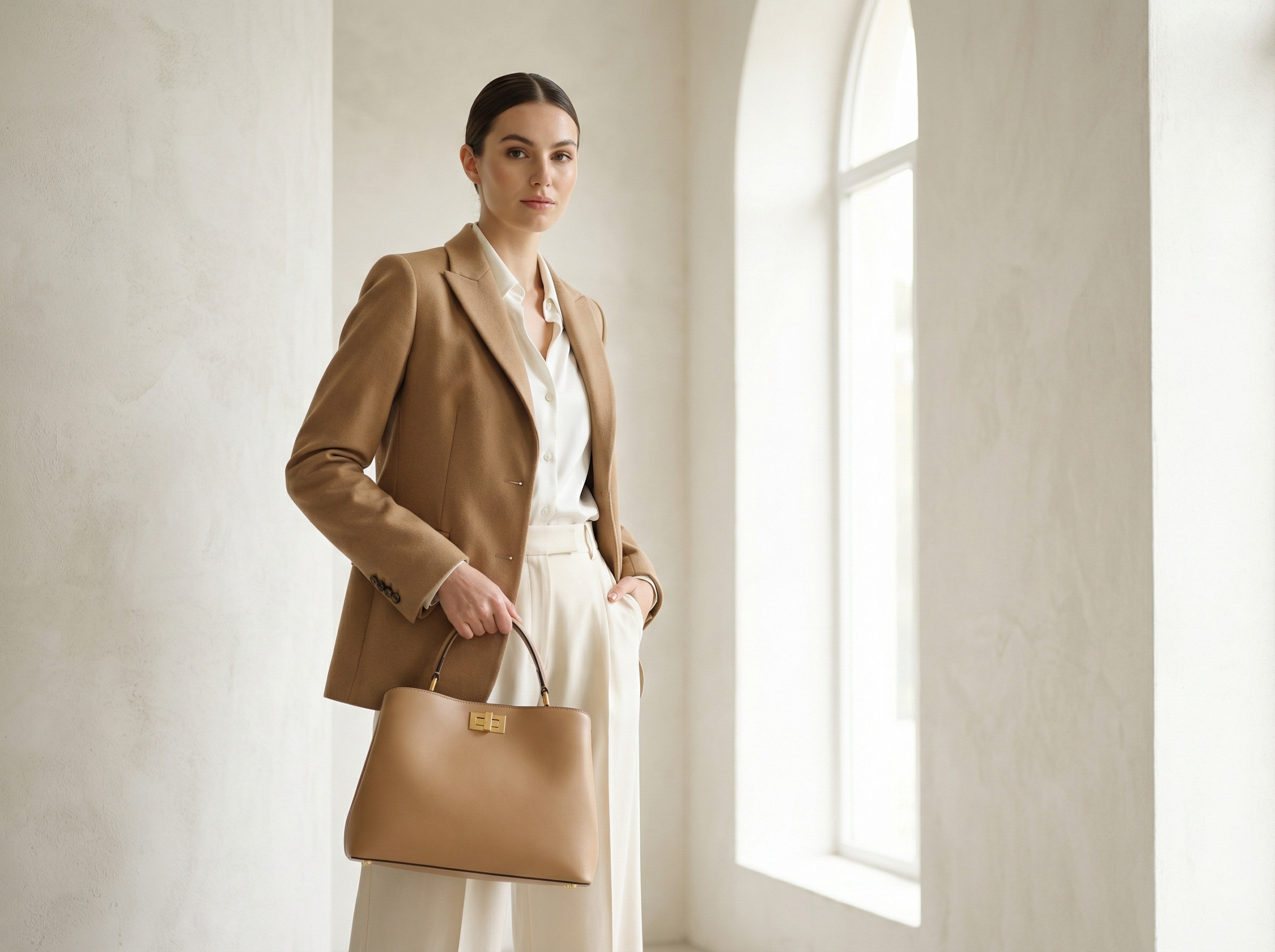 Przykłady kombinacji: mała czarna + strukturalna torebka w beżu = ponadczasowa elegancja. Garnitur z marynarką + torebka w ciemnym brązie = nowoczesny szyk.