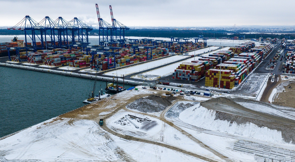 Budowa terminalu znajduje się już na zaawansowanym etapie. Zakończono tzw. zalądowienie terenu – w ramach tego procesu wykorzystano łącznie 3,26 mln metrów sześciennych piasku. Równolegle prowadzone są prace przy konstrukcji nabrzeży. Trwa montaż i kotwienie ścian nabrzeżowych oraz instalacja ponad 1850 pali na wszystkich trzech nabrzeżach.