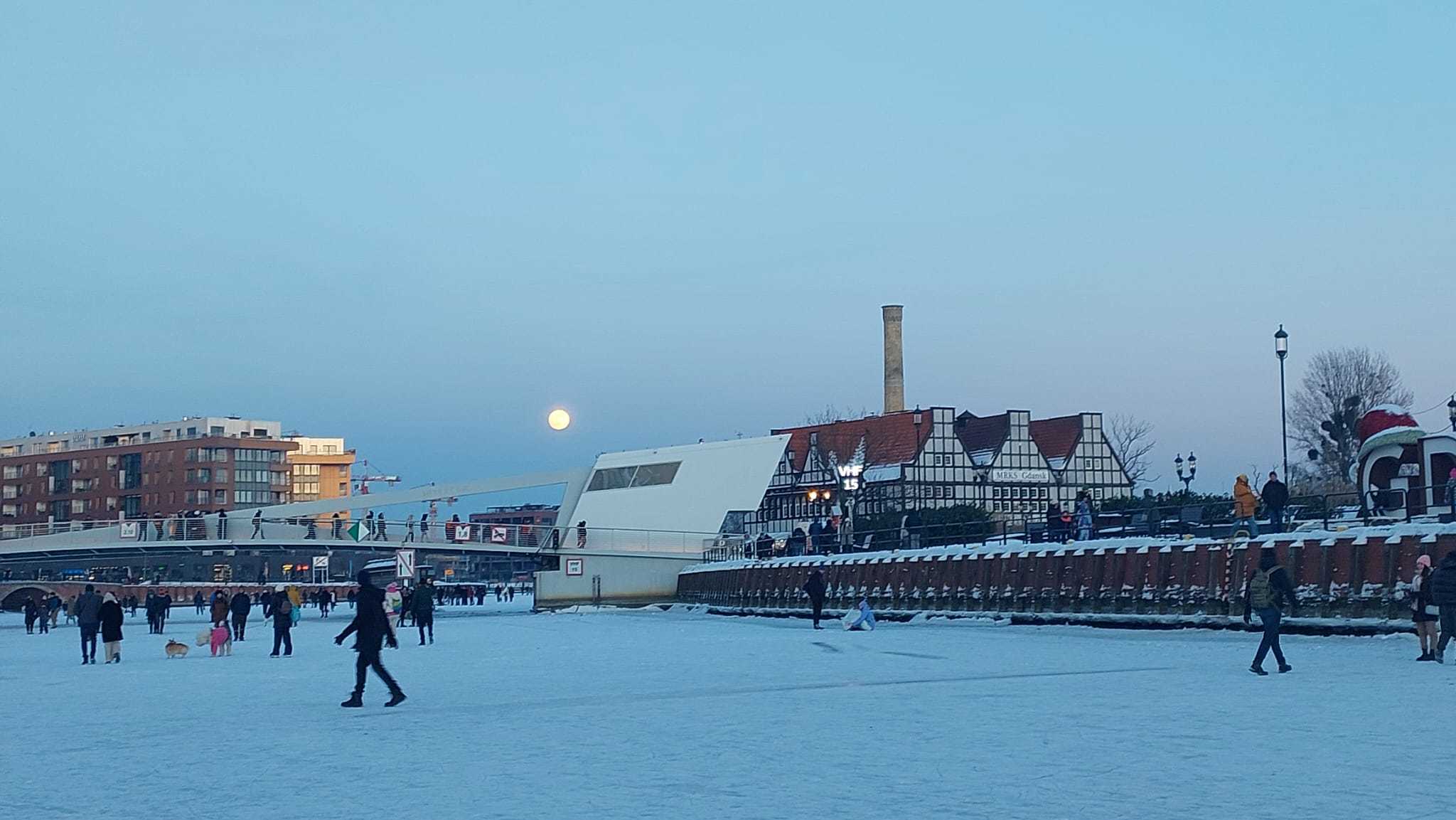 1 lutego 2026 roku Motława wyglądała zupełnie inaczej niż zwykle. Zamiast odbijać światła kamienic i statków, zamieniła się w wielką, białą taflę. Setki osób spacerowały wzdłuż nabrzeży, robiąc zdjęcia i z niedowierzaniem patrząc na skute lodem wody.