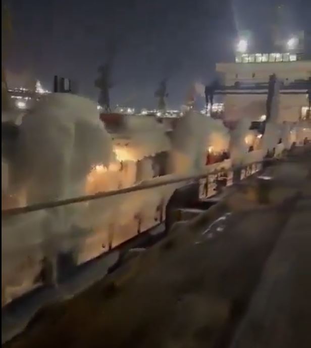 ¡Impresionante! El puerto de Gdańsk recibe a este "barco fantasma" completamente sepultado en hielo. Se estima que carga con un sobrepeso de 50 toneladas de pura escarcha debido a las tormentas en el Báltico. Las operaciones en la Baltic Hub Terminal están bajo mínimos por el… pic.twitter.com/cIwUMpgSha