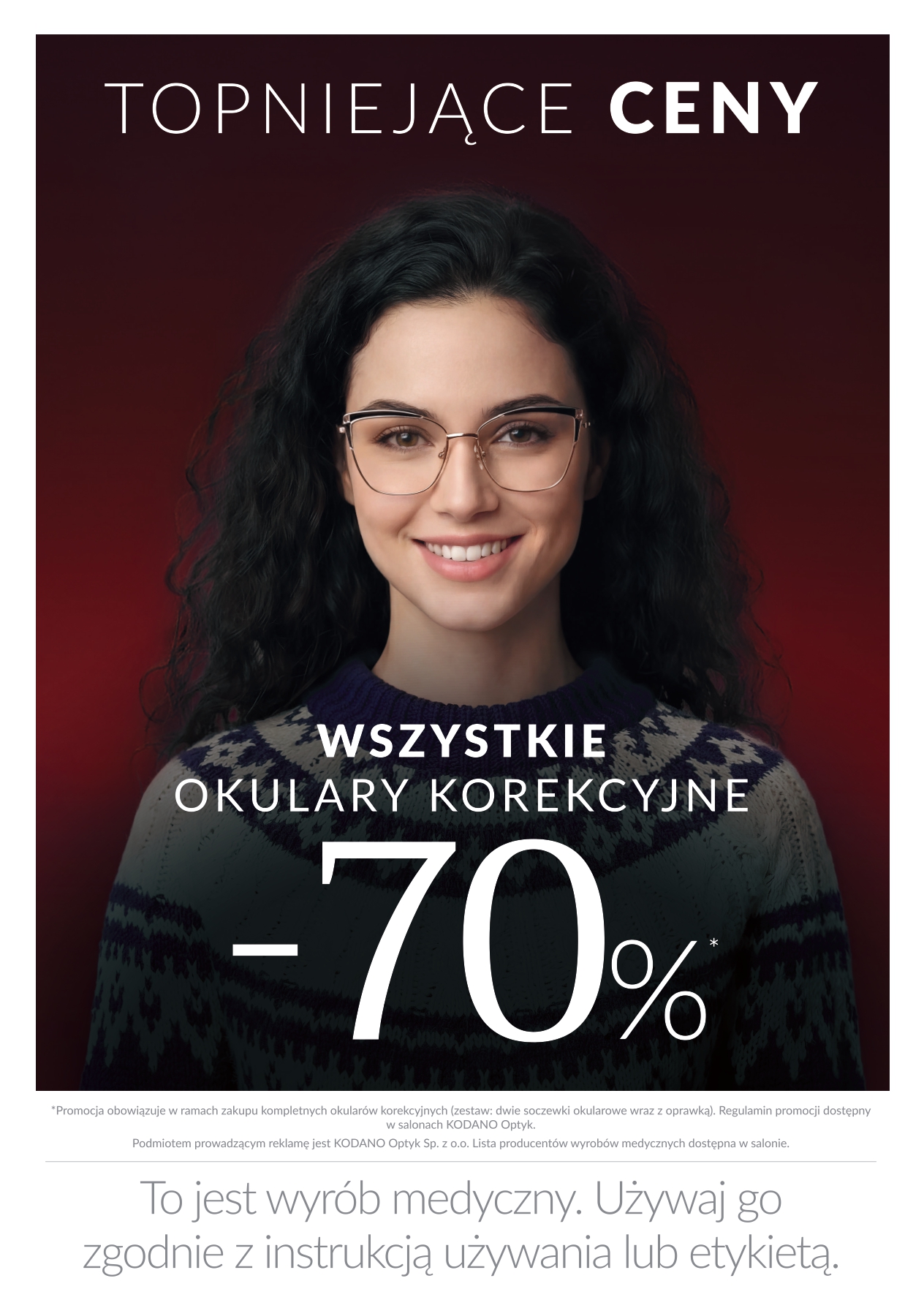Mieszkańcy Redy i okolic mają wyjątkową okazję do zadbania o swój wzrok bez nadwyrężania domowego budżetu. Przez miesiąc zaczynając od 13 lutego 2026 roku w salonie KODANO Optyk w M Park Reda obowiązywać będzie rabat -70% na kompletne okulary korekcyjne (zestaw: oprawka + dwie soczewki okularowe).