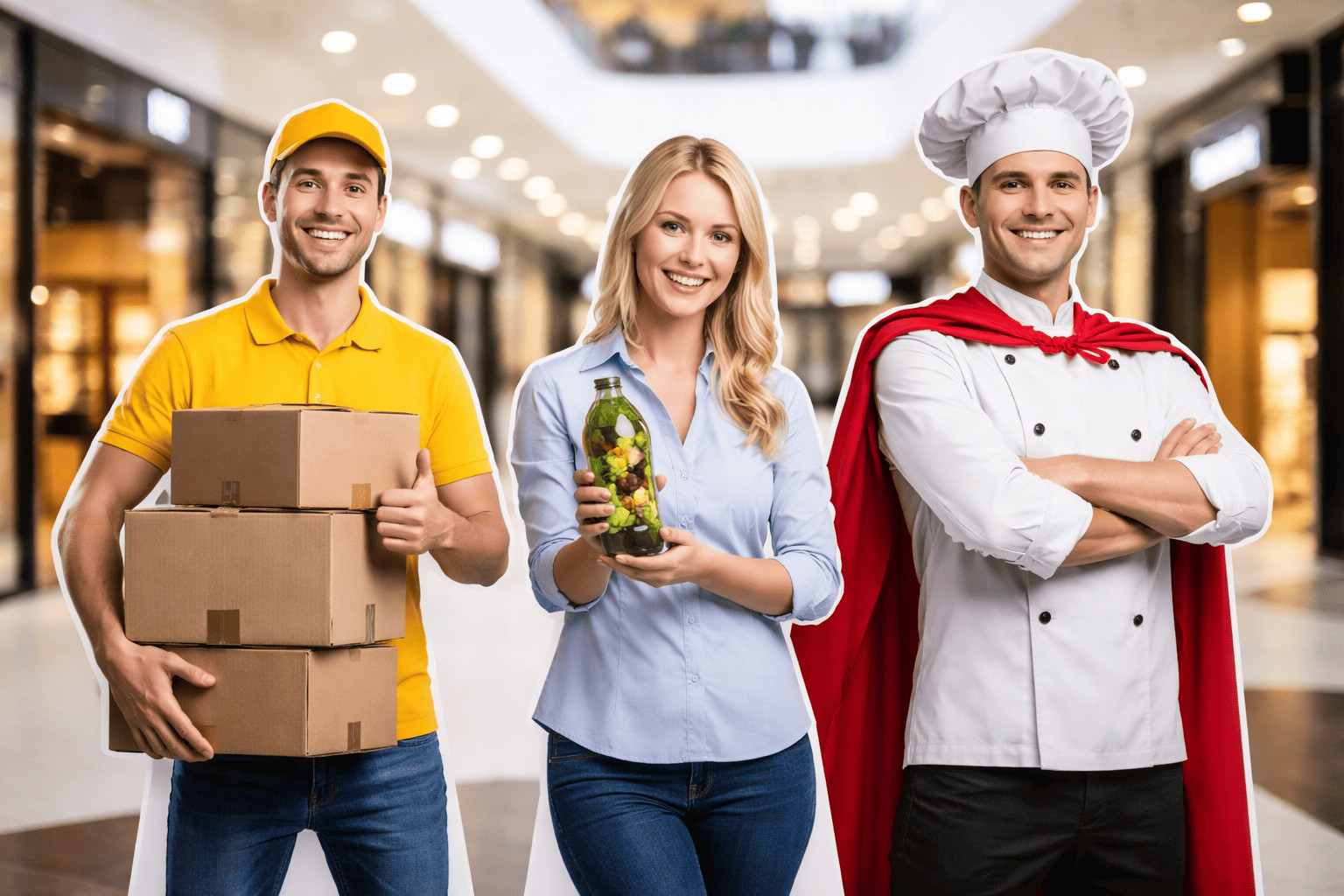 Kartonowe postacie funkcjonują jako nośnik informacji osadzony bezpośrednio w przestrzeni użytkownika. Ich obecność jest zauważalna, lecz nieinwazyjna. Dzięki temu mogą wspierać przekaz marketingowy w miejscach o dużym natężeniu ruchu.