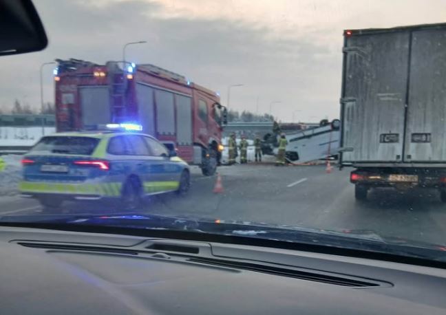 Do groźnie wyglądającego zdarzenia doszło dziś (18 lutego) około godziny 6:35 na obwodnicy w Gdyni, na wysokości Alei Kazimierza Jagiellończyka. W rejonie zjazdu na Wielki Kack dachował bus, blokując dwa pasy ruchu w kierunku Gdańska.