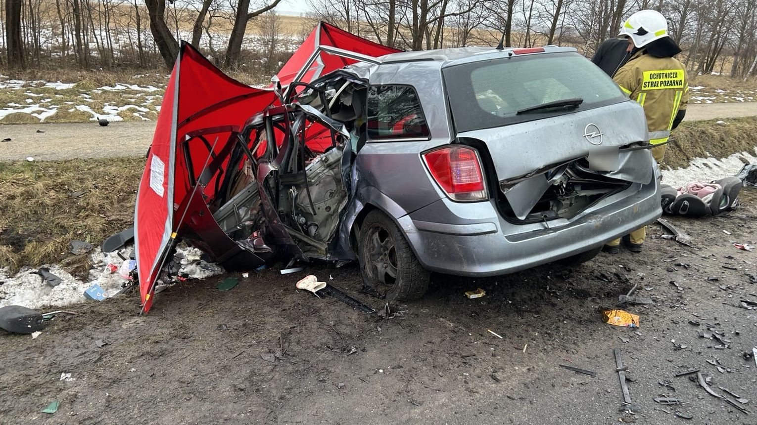 Doszło do tragicznego w skutkach wypadku. W wyniku zderzenia samochodu osobowego marki Opel z pojazdem ciężarowym śmierć poniósł kierowca osobówki.