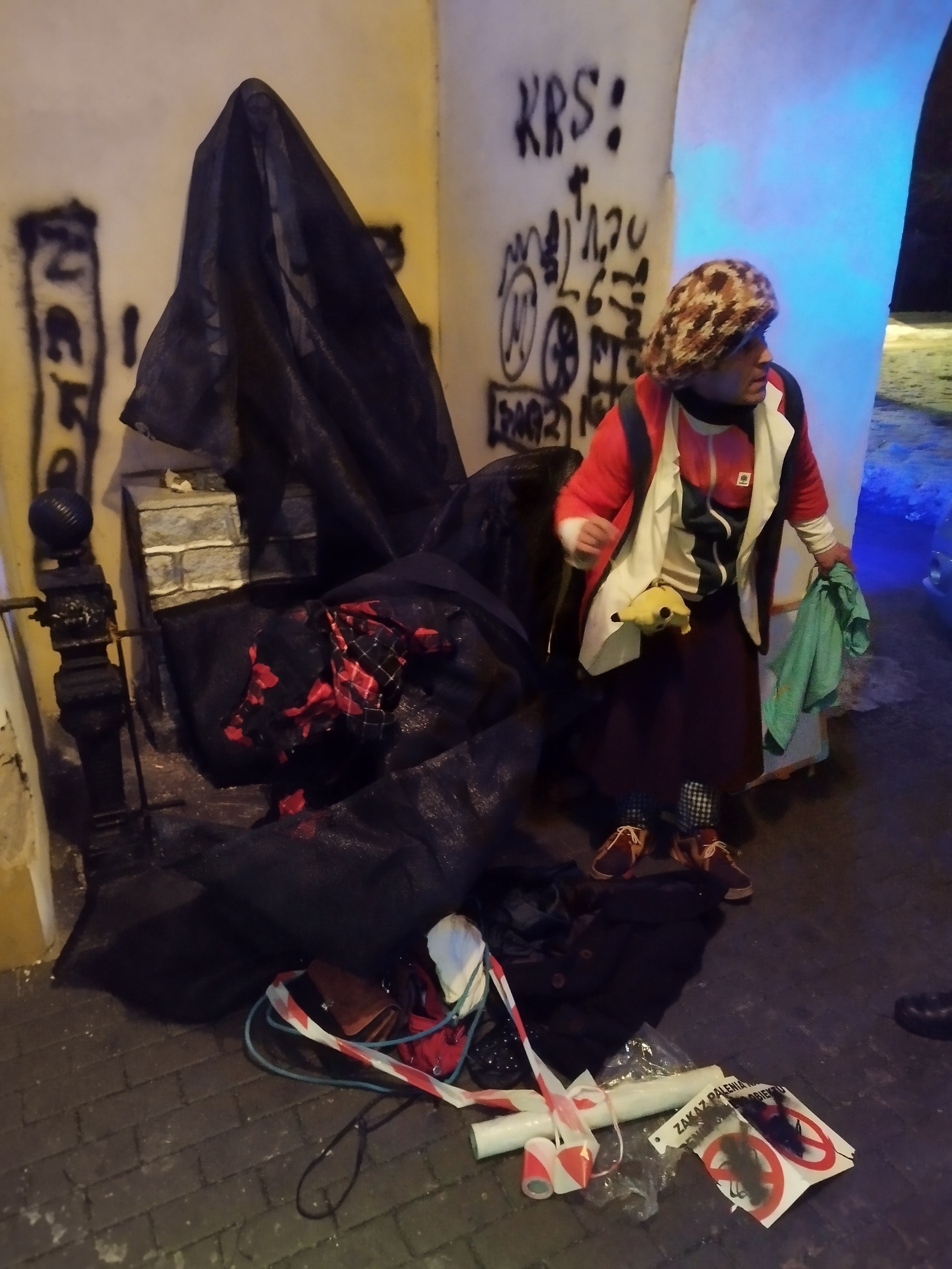 Na miejsce natychmiast skierowano patrol. W kaplicy funkcjonariusze zastali jednak nie kobietę, lecz 41-letniego mężczyznę ubranego w strój przypominający kobiecy. Był to bezdomny, znany strażnikom z wcześniejszych interwencji.