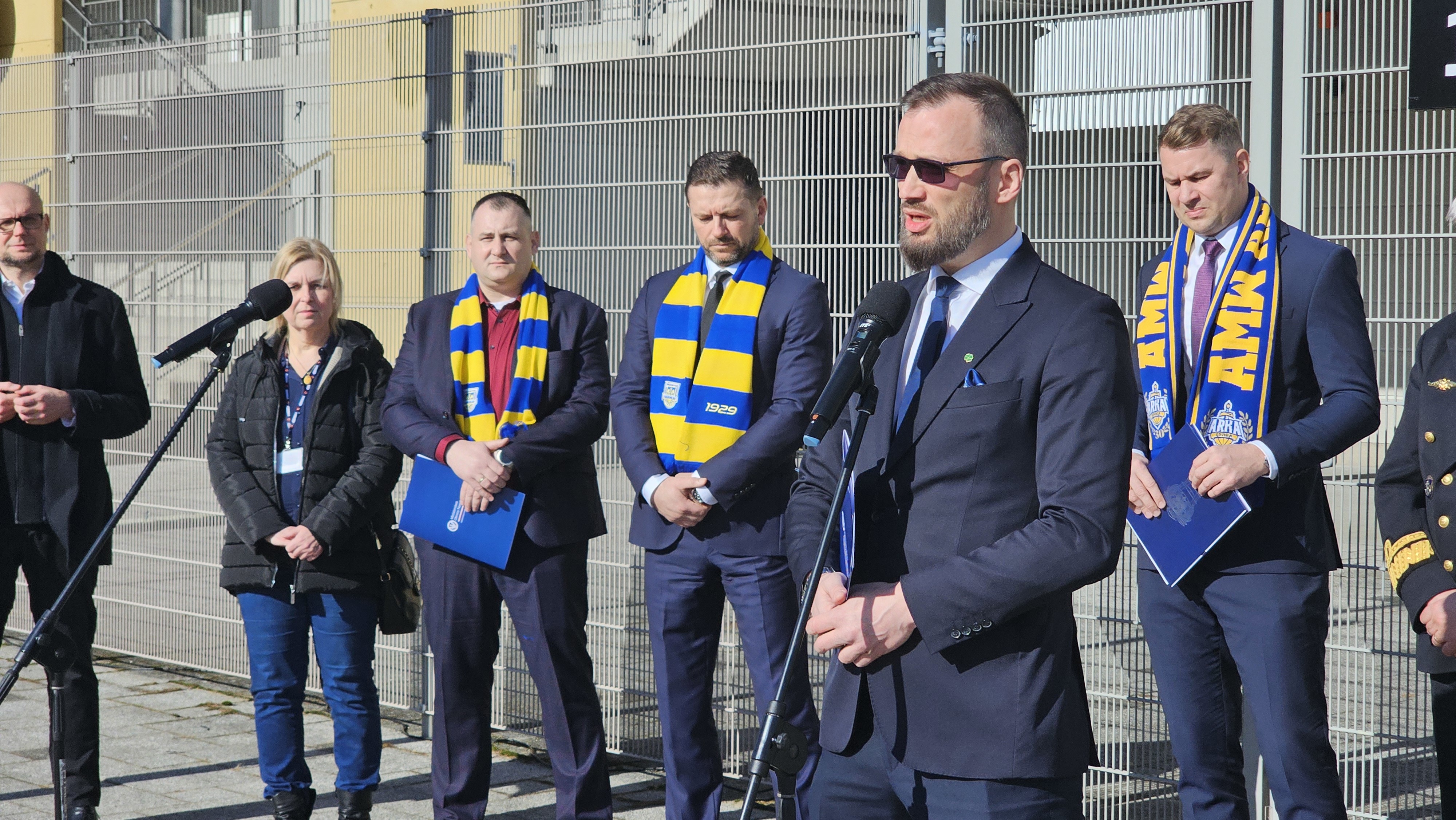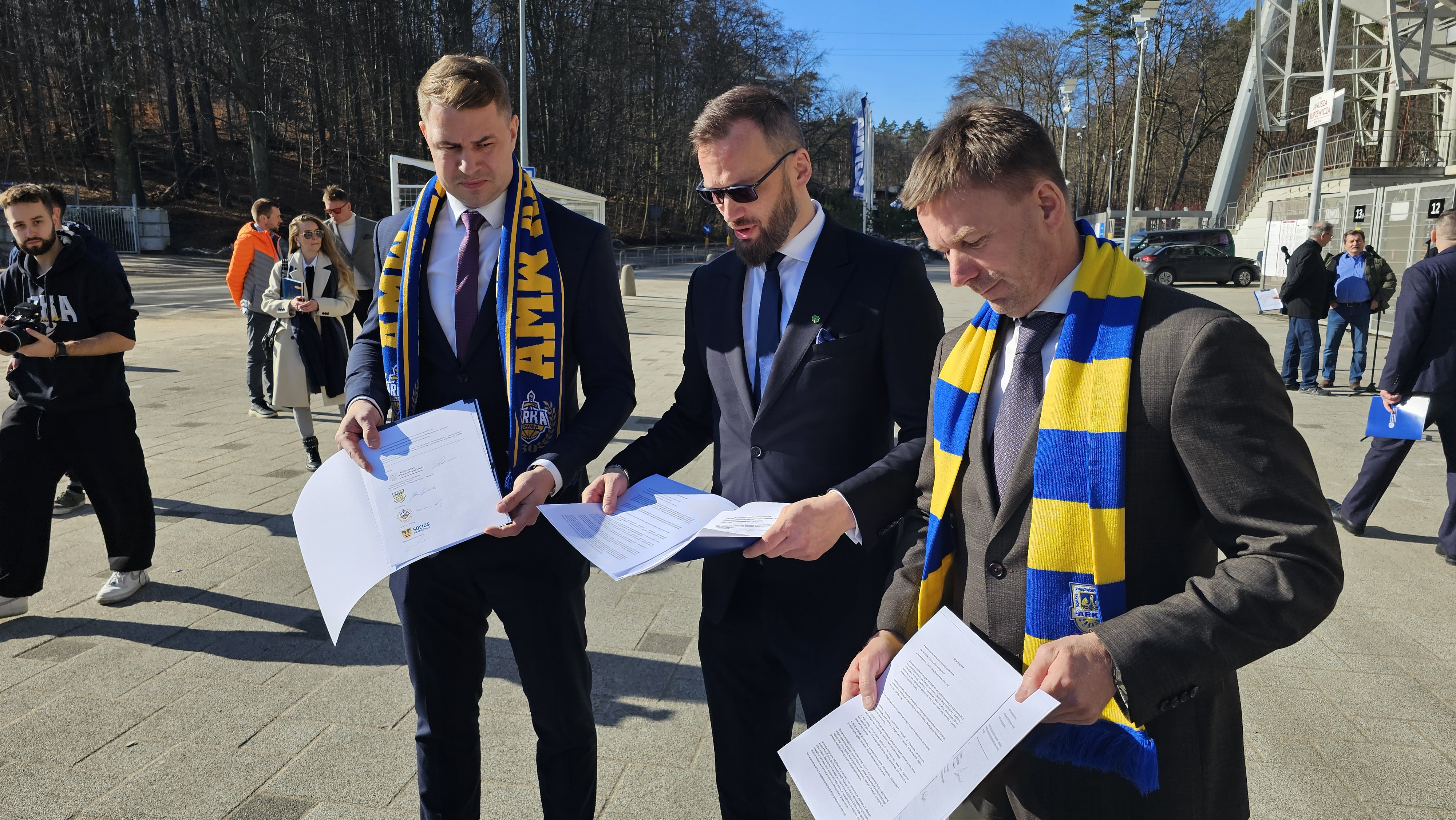 We wtorkowej, 3 marca 2026 roku, konferencji uczestniczyli doradca Ministra Obrony Narodowej Maciej Samsonowicz - koordynator Grupy Roboczej ds. projektu „Zielony Okręg Przemysłowy - Kaszubia”, kontradmirał prof. dr hab. Tomasz Szubrycht - rektor-komendant Akademii Marynarki Wojennej w Gdyni, prezes Zarządu Bartłomiej Wołoszyn - KKS Gdynia SA AMW Arka Gdynia, przewodniczący Rady Nadzorczej Arka Gdynia SA Marcin Gruchała , prezes Zarzadu Arka Gdynia SA Wojciech Pertiewicz, Beata Zastawna - radna Miasta Gdyni oraz Daniel Lessnau – prezes Stowarzyszenia Socios Arka Gdynia.
