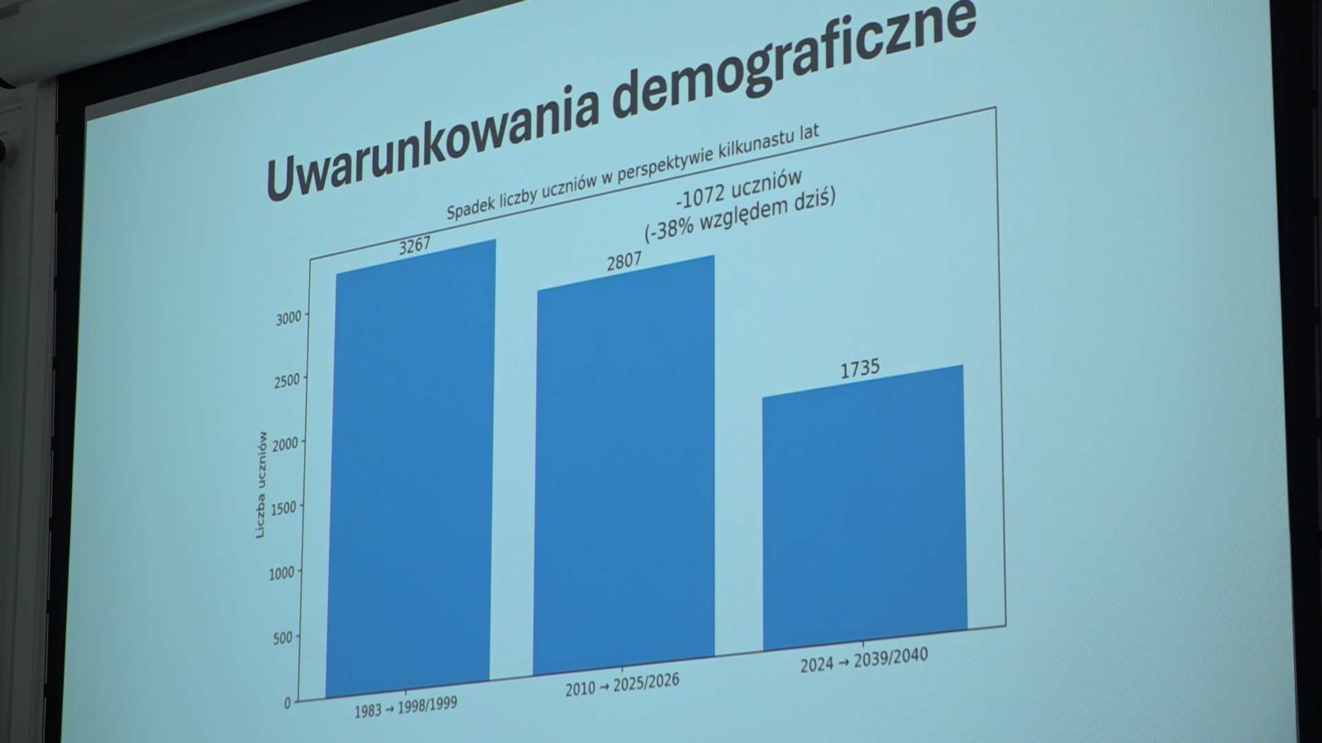 Tymczasem problemem jest także demografia. Podczas spotkania zaprezentowano jak różniła się liczba urodzeń na przestrzeni od 1983 do 2025 roku i okazuje się, że w niektórych samorządach mowa nawet o 70 proc. spadku, a w gminie Choczewo niemal o 90 proc. spadku liczby nowo narodzonych dzieci. To problem, który szkoły dopiero zaczną odczuwać.