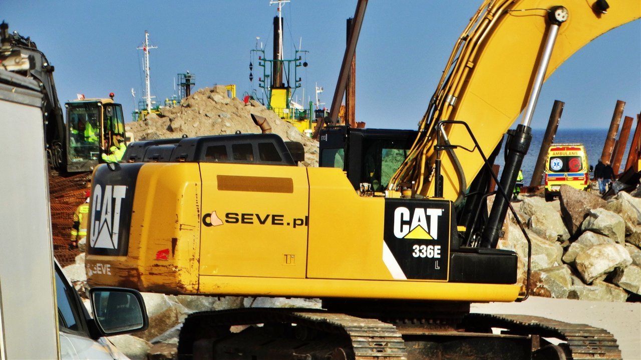 Do groźnego wypadku doszło w sobotni (14 marca) poranek w Ustce podczas prac budowlanych przy wschodnim falochronie. Jedna z pracujących tam koparek zsunęła się do wody. W wyniku zdarzenia ucierpiał operator maszyny.