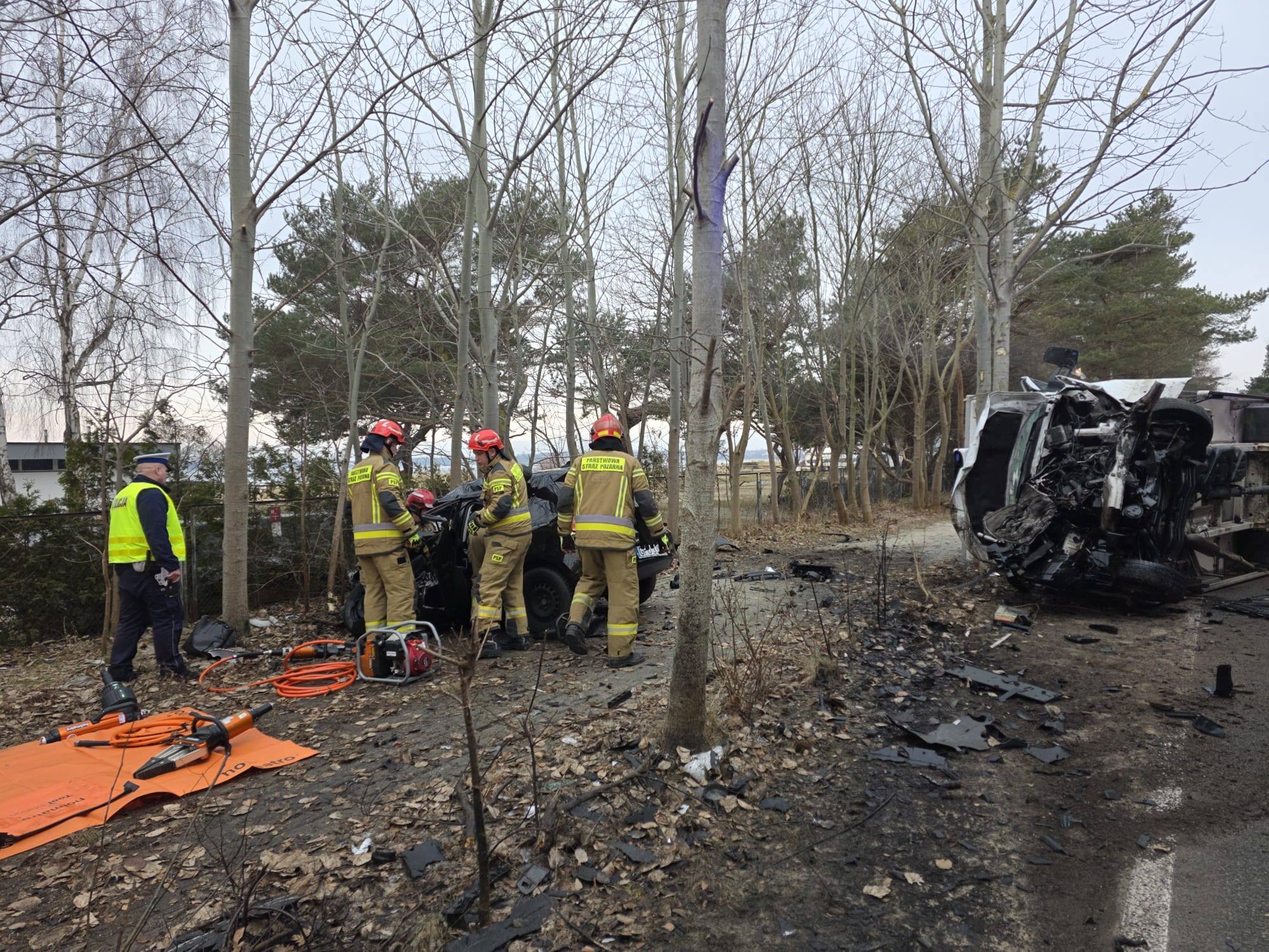 Strażacy przystąpili do działań ratunkowych i przy użyciu specjalistycznego sprzętu wydostali poszkodowaną osobę z rozbitego pojazdu. Niestety mimo podjętych działań ratunkowych zespół ratownictwa medycznego stwierdził zgon. Śmierć na miejscu poniosła kierująca samochodem osobowym kobieta.