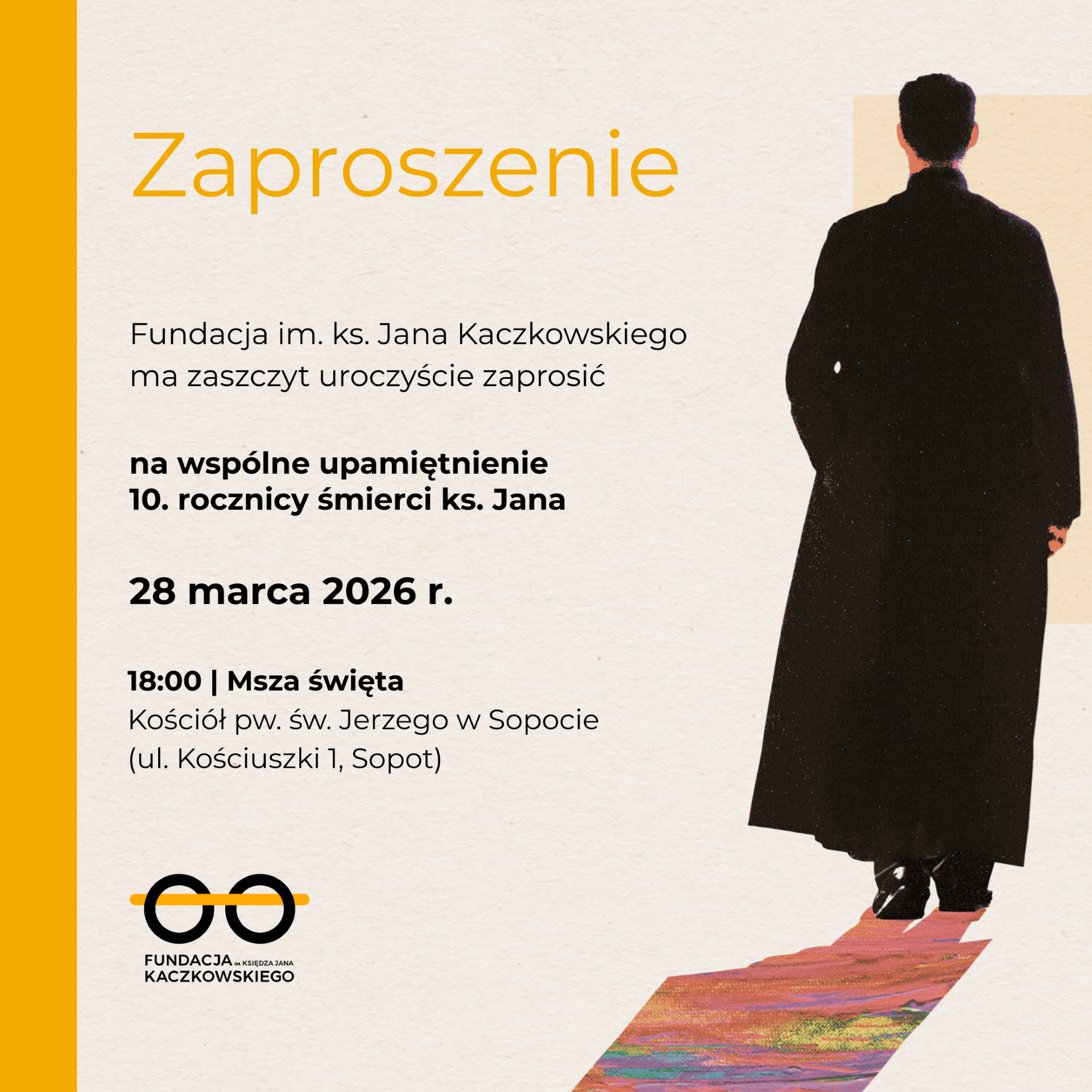28 marca minie 10 lat od śmierci duchownego. Fundacja im. ks. Jana Kaczkowskiego organizuje wspólne upamiętnienie okrągłej rocznicy jego śmierci. Tego dnia w kinie w Centrum Riviera w Gdyni odbędzie się pokaz przedpremierowy filmu "Dzień dziecka księdza Jana Kaczkowskiego w reżyserii Artura Wierzbickiego. Jest to pokaz zamknięty na który nie ma już miejsc wolnych. Natomiast o godz. 18 w kościele im. pw. św. Jerzego w Sopocie przy ul. Kościuszki 1 odprawiona zostanie msza św.