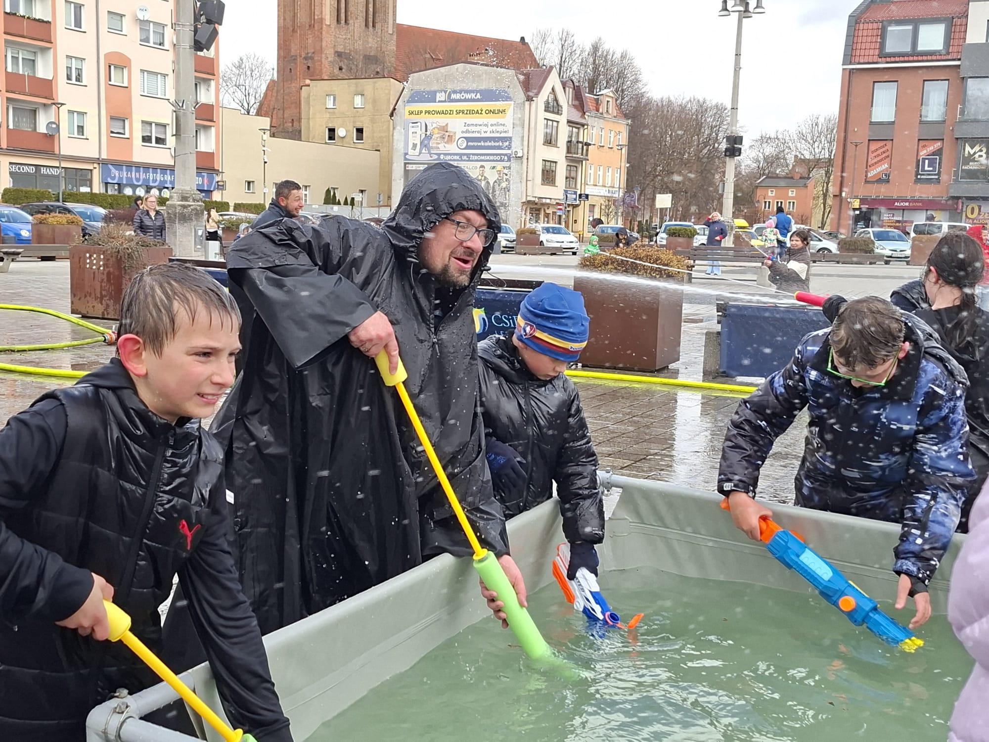 W Poniedziałek Wielkanocny, 6 kwietnia, punktualnie o godzinie 13:00 wystartował Miejski Śmigus-Dyngus. Wydarzenie przyciągnęło całe rodziny – od najmłodszych lęborczan wyposażonych w kolorowe zabawki do psikania, po dorosłych, którzy z radością powrócili do dziecięcych wspomnień.