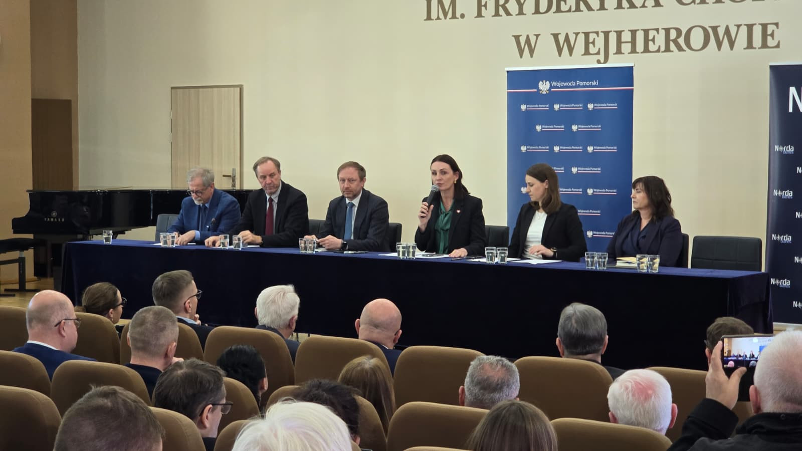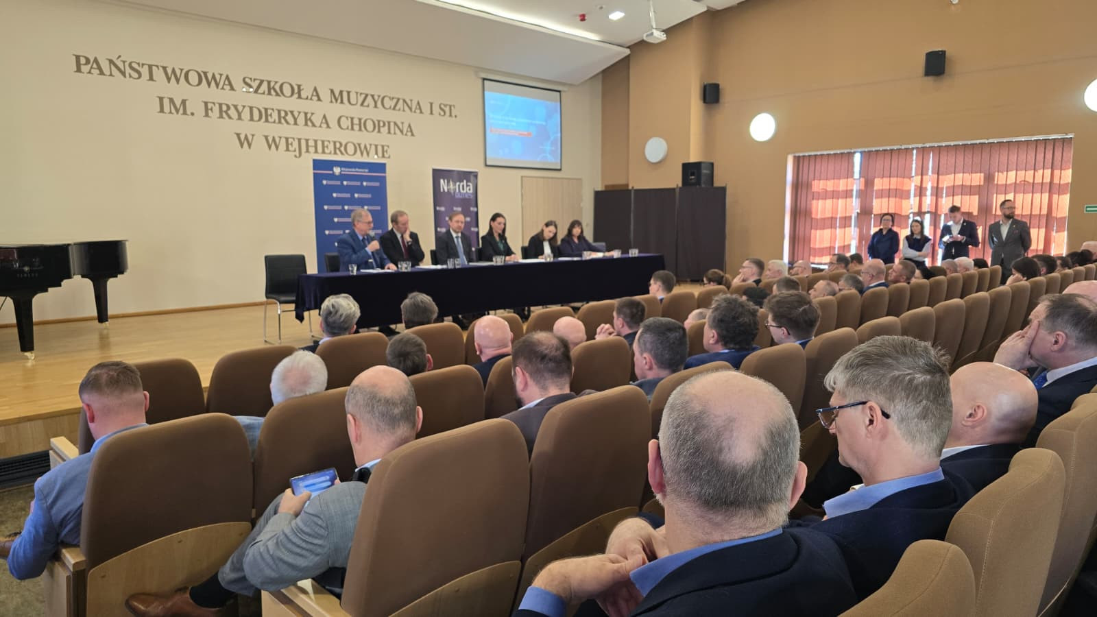 W auli Państwowej Szkoły Muzycznej w Wejherowie odbyło się spotkanie, które dotyczyło postępów w przygotowaniach do budowy elektrowni jądrowej i infrastruktury towarzyszącej, a także uczestnictwa w procesie lokalnych przedsiębiorców.