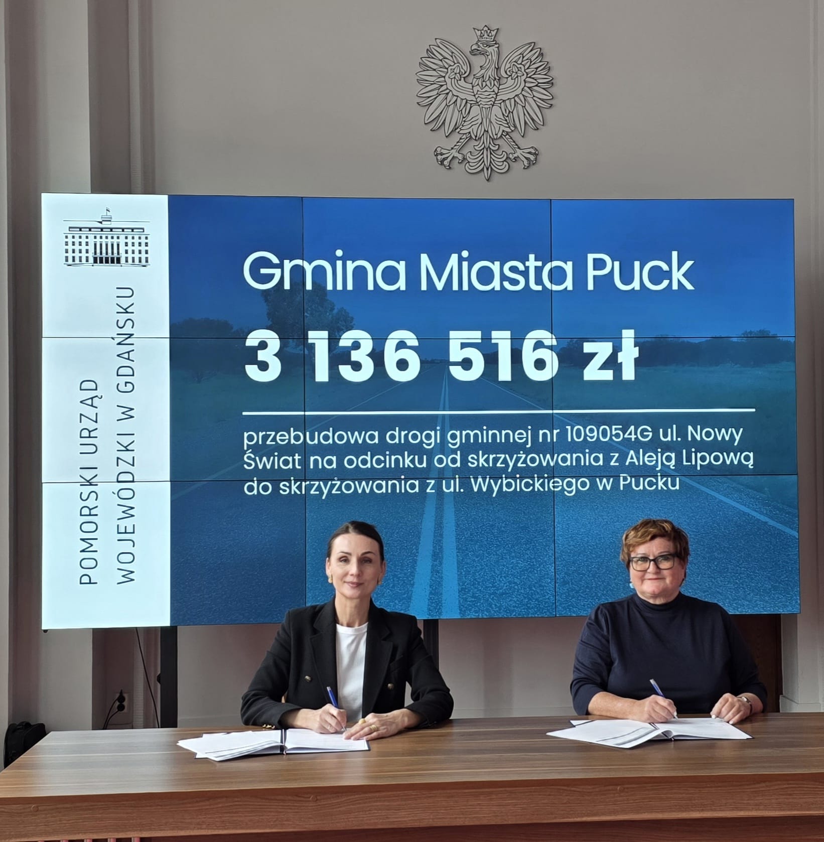 W Pomorskim Urzędzie Wojewódzkim podpisano umowę o dofinansowanie ważnej inwestycji drogowej w Pucku. Dokument podpisały burmistrz Hanna Pruchniewska oraz wojewoda pomorska Beata Rutkiewicz.