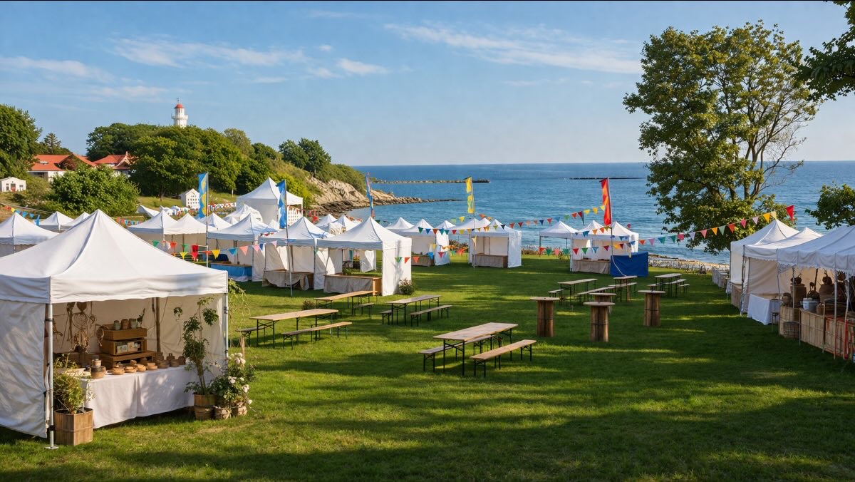 Pogoda nad Bałtykiem bywa kapryśna nawet w lipcu. Doświadczeni organizatorzy wiedzą, że obok nagłośnienia i cateringu w budżecie powinny znaleźć się namioty i pawilony. Składane namioty handlowe w rozmiarach od 2x2 do 4x8 metrów sprawdzają się zarówno na małych kiermaszach, jak i na dużych imprezach gminnych.