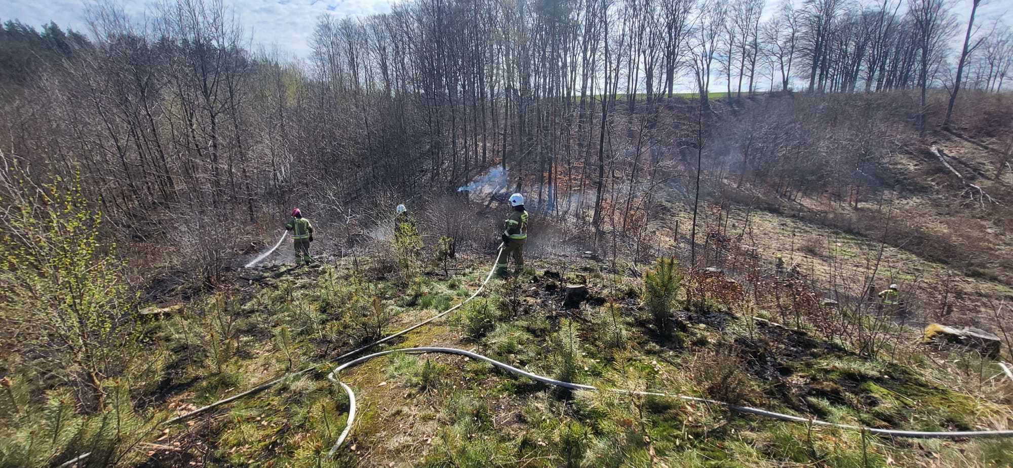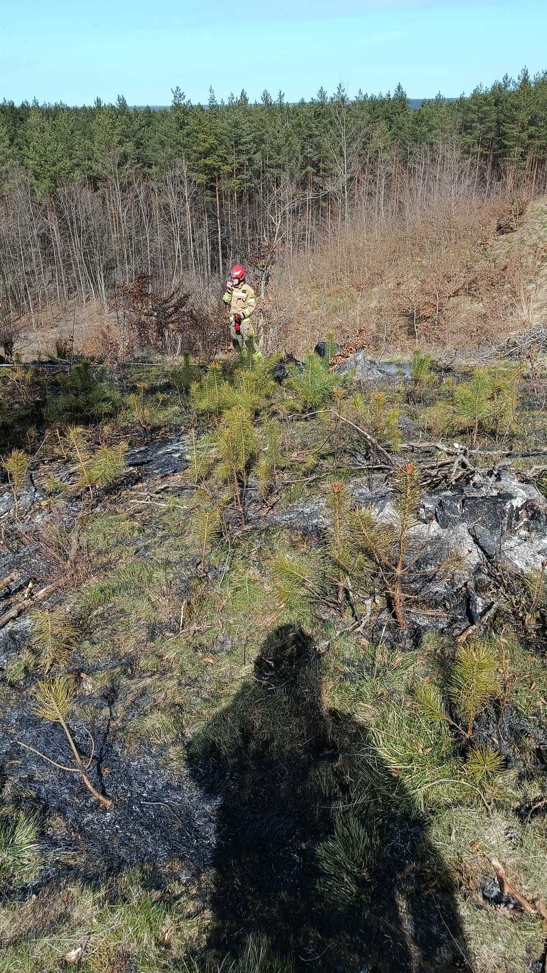 Jak podaje oficer prasowy KP PSP w Wejherowie ogn. Grzegorz Hinz pierwszy pożar wybuchł 17 kwietnia. Strażacy zgłoszenie otrzymali o godzinie 20:23. Ogień objął około 30 metrów kwadratowych ściółki leśnej. Działania gaśnicze zakończono o 21:40. W akcji uczestniczył jeden zastęp Państwowej Straży Pożarnej oraz trzy zastępy Ochotniczej Straży Pożarnej.