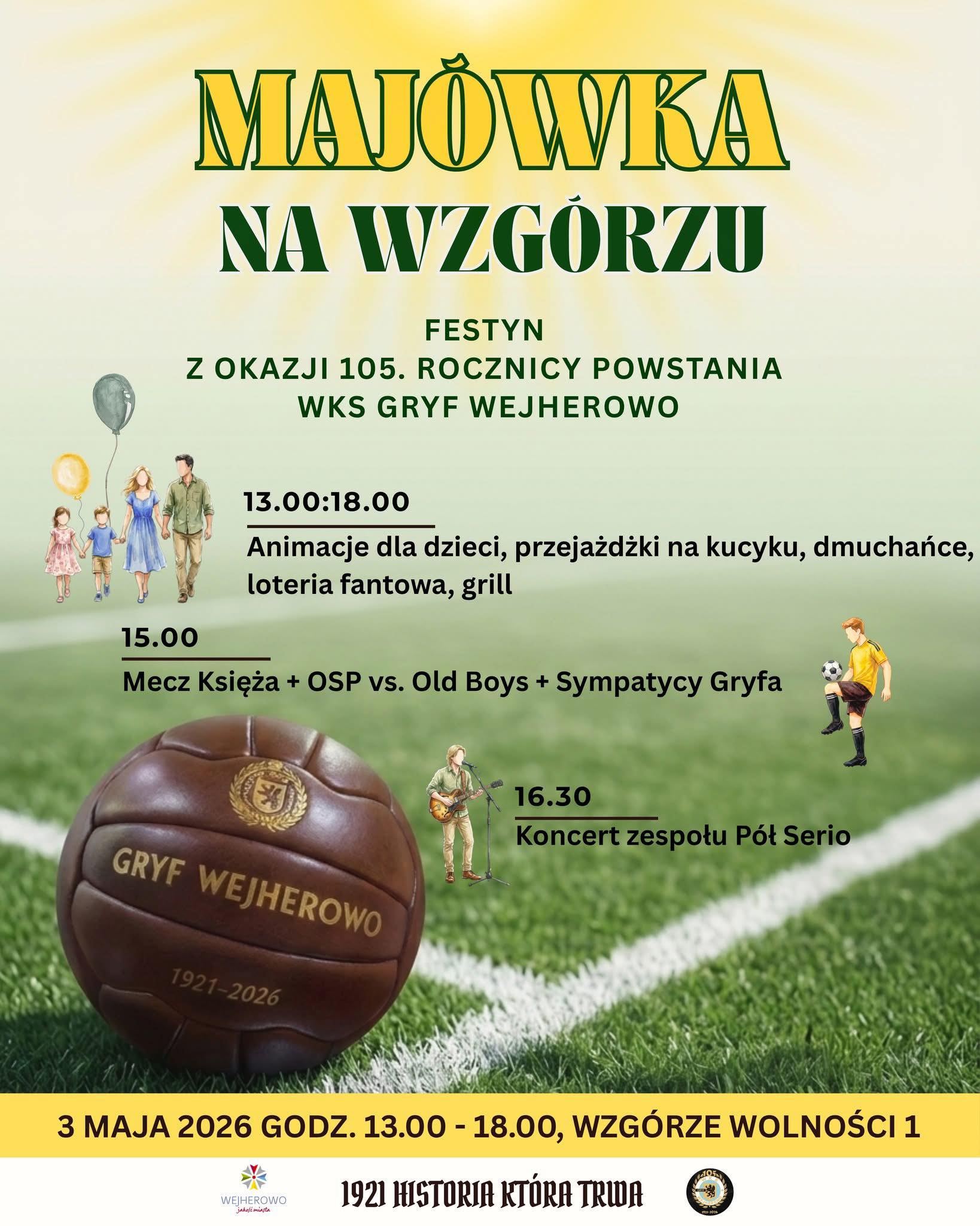 Wejherowo przygotowuje się na wyjątkowe wydarzenie. Już 3 maja na Wzgórzu Wolności odbędzie się festyn „Majówka na Wzgórzu”, organizowany z okazji 105. rocznicy powstania WKS Gryf Wejherowo.