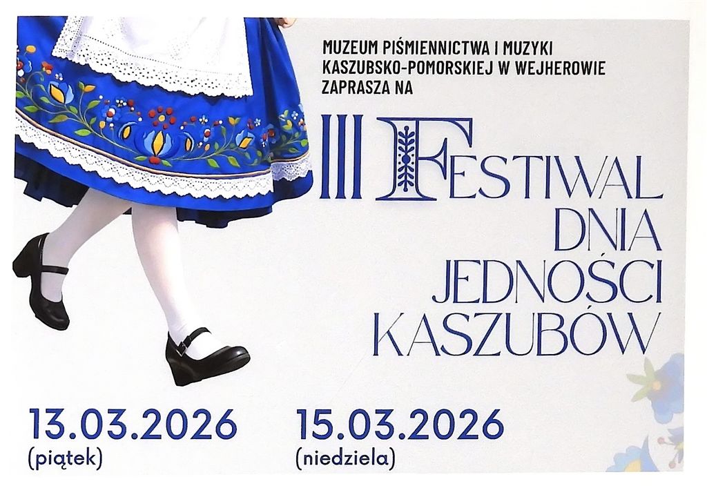 W Muzeum Piśmiennictwa i Muzyki Kaszubsko-Pomorskiej w Wejherowie odbył się III Festiwal Dnia Jedności Kaszubów. Trzydniowe wydarzenie, które trwało od 13 do 15 marca, zgromadziło mieszkańców regionu oraz miłośników kaszubskiej kultury, oferując bogaty program spotkań, warsztatów, koncertów i wydarzeń artystycznych.