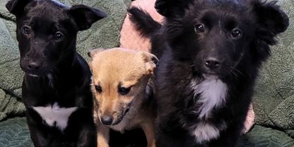 Szczeniaki porzucone w kartonie przy drodze. Kobieta zauważyła je przez okno