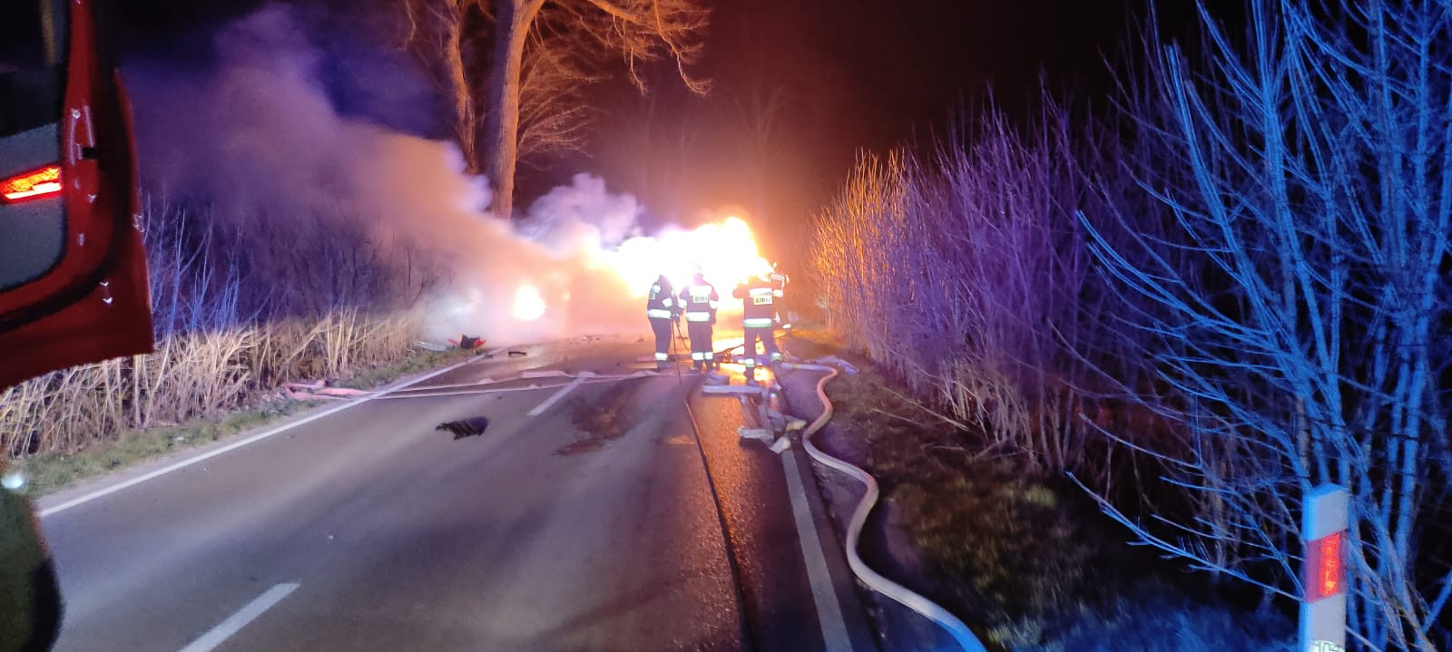 Wypadek w okolicach Pucka. Samochód dachował i stanął w płomieniach | ZDJĘCIA