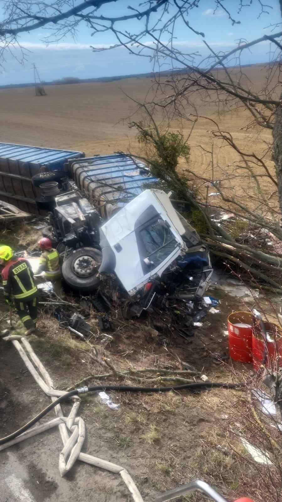 Ciężarówka płonie na DW222! Poważny wypadek, droga zablokowana