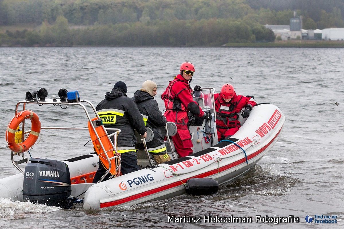 Na Jeziorze Żarnowieckim kilkudziesięciu ratowników uczłyo się ratować tonących